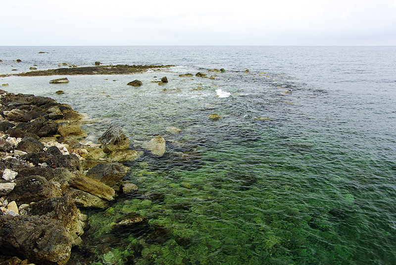 蔚蓝的海水和黄沙将这篇海染成宁静的绿色。