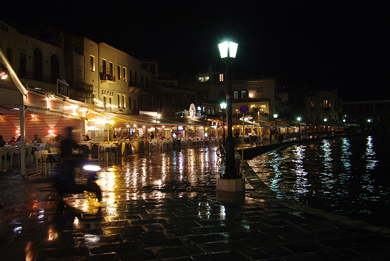 不巧的是那天遇到了哈尼亚罕见的连绵阴雨,一直下到了第二天早上。虽然没有了阳光下旧港的多彩绚丽,但这也给古城平添了一份静谧。