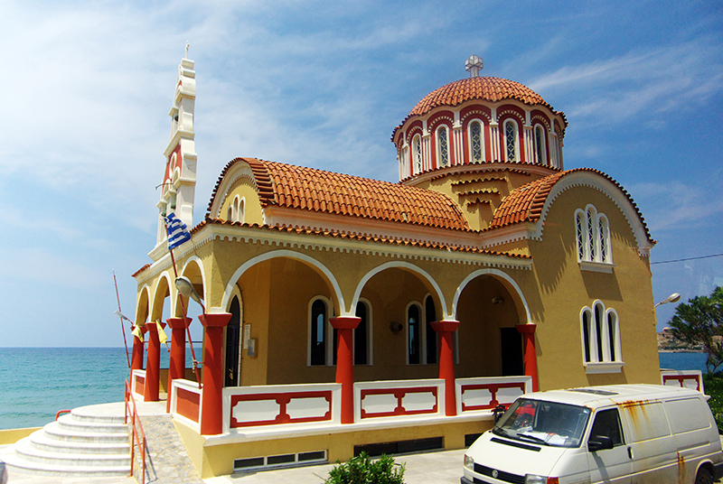希腊 全境几乎都信奉东正教,路过一个公路旁的小村庄,他们将教堂直接建在了海边。