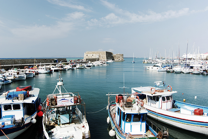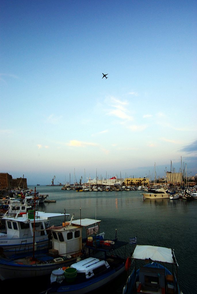 Heraklion是克里特 岛交通枢纽。在海边散步间,一家客机正好起飞,掠过海港上空。