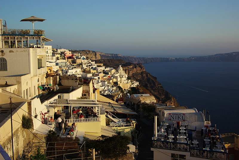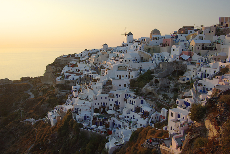 夕阳下的Oia和白天的纯洁靓丽相比,多了一分温暖。