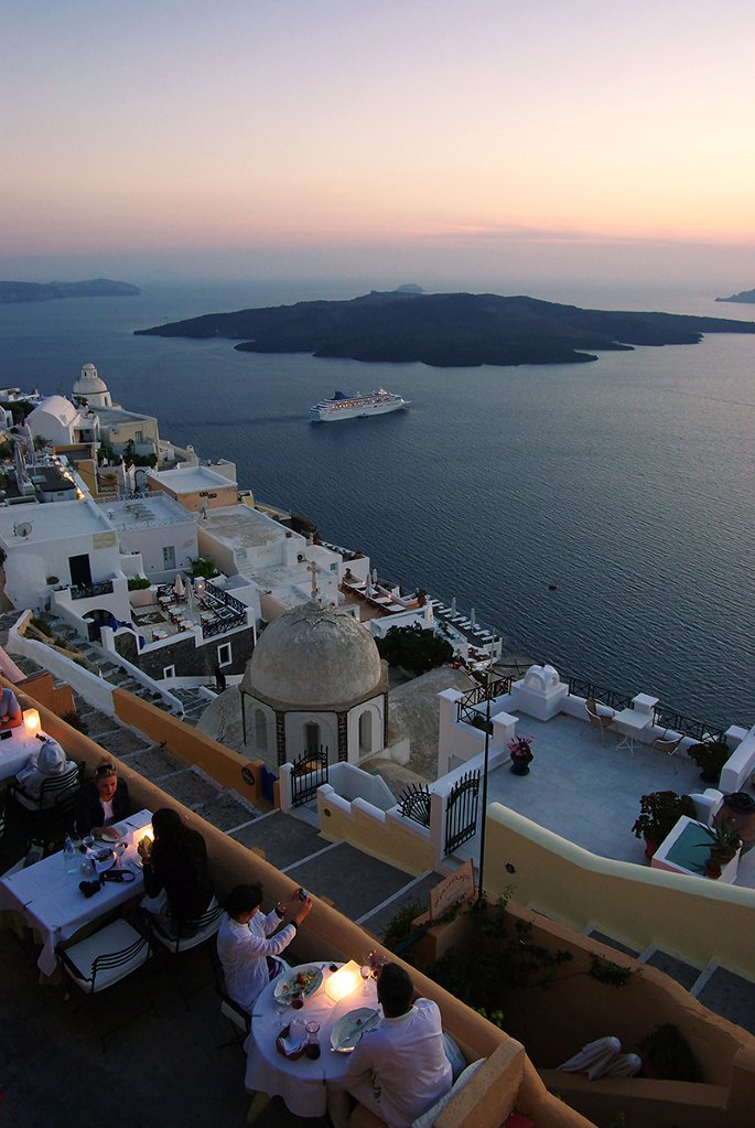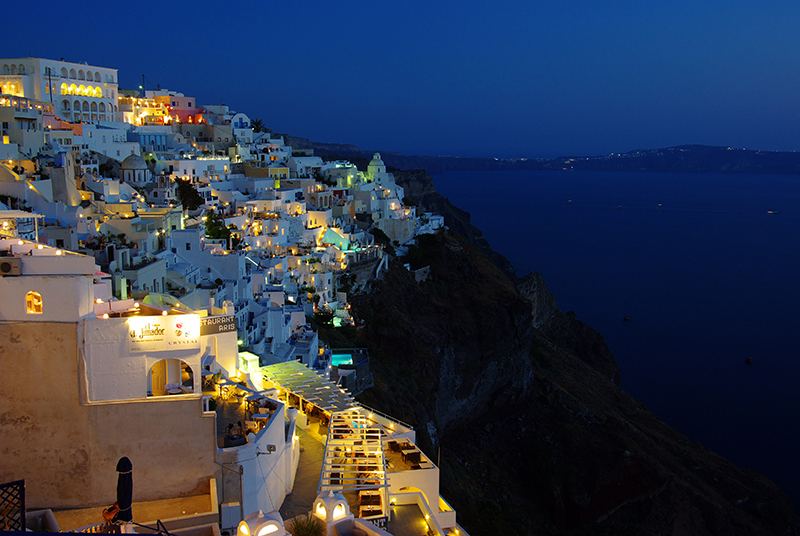 如果说白天的圣托里尼 是阳光的画布,那么夜晚的小岛则变成了灯光的舞台。