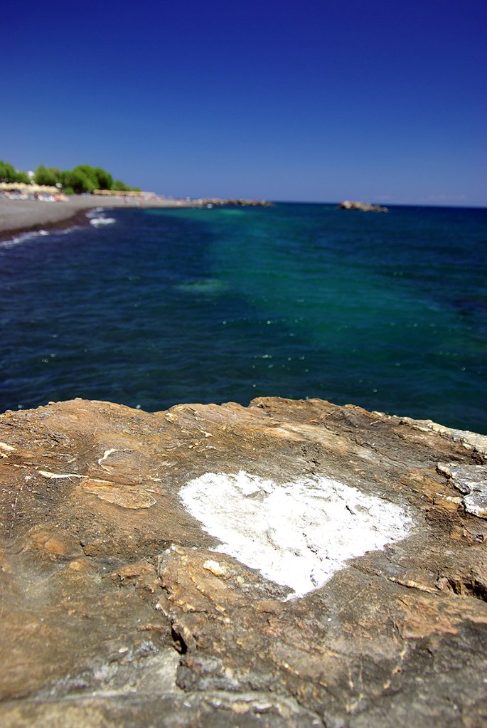 不知哪对情侣在海边的巨石上刻下了这颗大大的爱心。