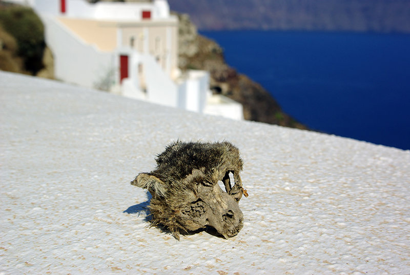 这里宛若一个猫的王国,在一段人迹罕至的小巷里,一颗猫的头盖骨静静摆在路边。
