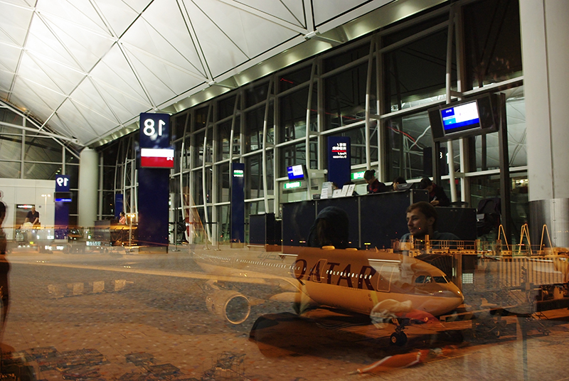 我们的航班凌晨从HKG出发,卡塔尔 航班的机位非常好,总是在过安检后最近的几个登机口登机。不像上次搭乘air asia, 整整快步走了15分钟才到最角落的登机口,到达时已经是last call了