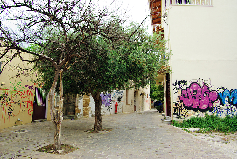 再一拐,便进入了宁静的古城区。无处不在的涂鸦和门前的两棵橄榄树。
