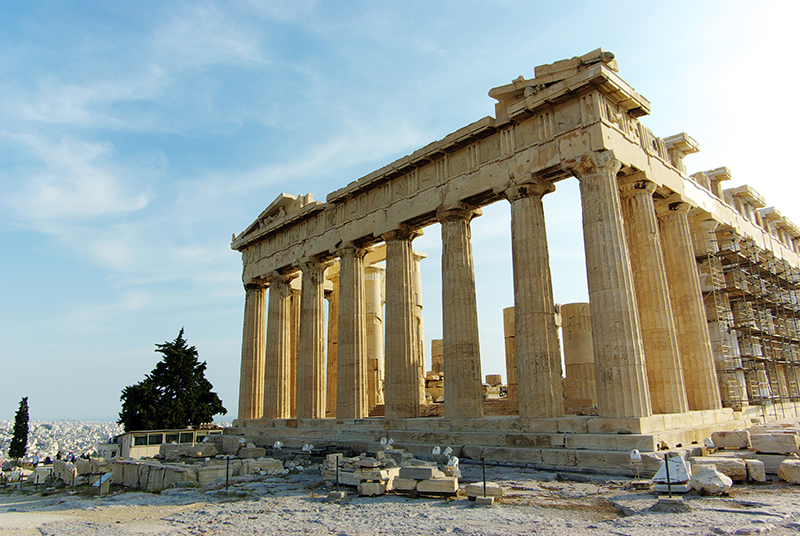 数次毁于战火而几经修复的帕特农神庙。