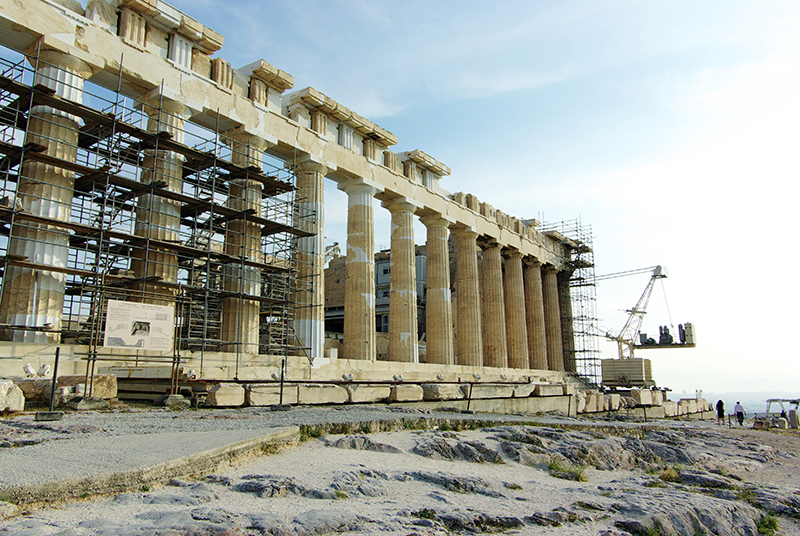 希腊 政府对巴特农神庙的修复工作断断续续,由于资金不足,神庙至今仍然没有完全修好。当然了,拼接起散落一地的大理 石也不是易事。(我猜中国 人能在一天内拆了它,然后一星期内装好)
