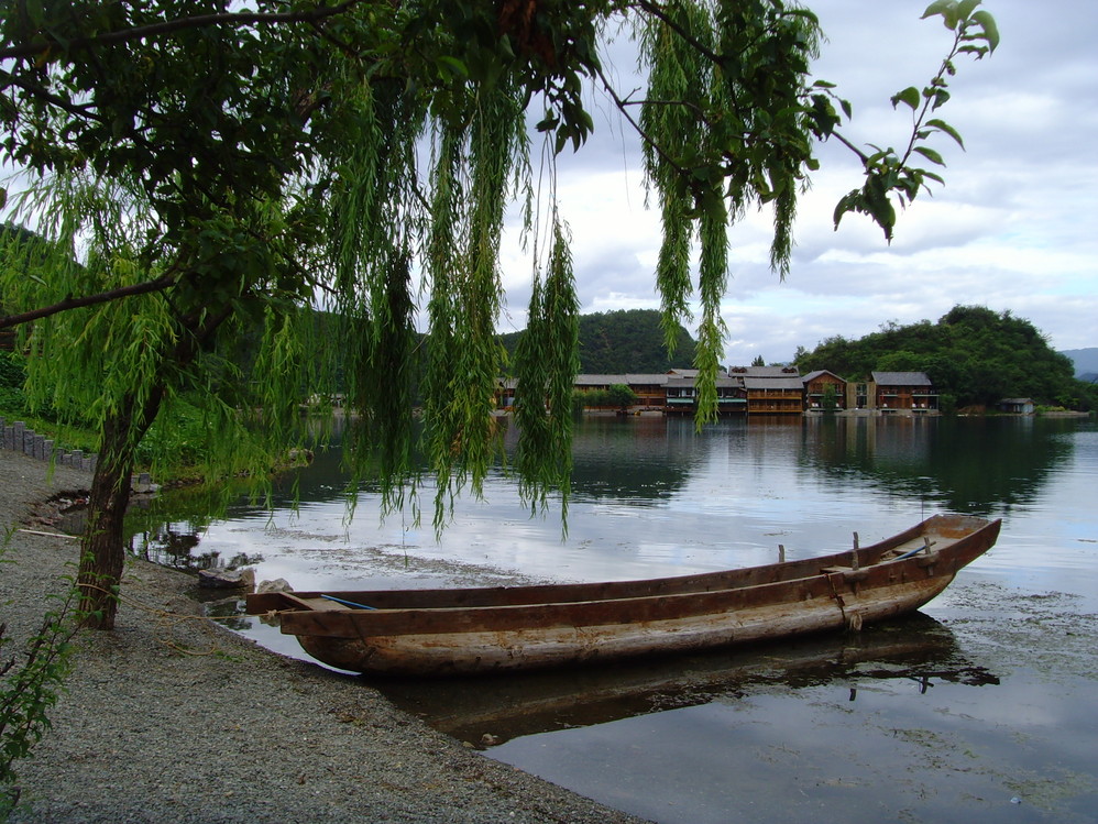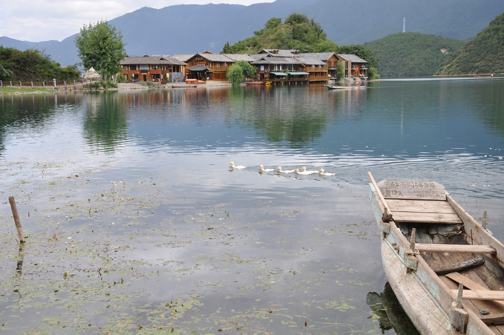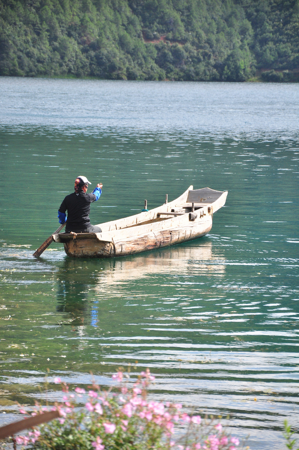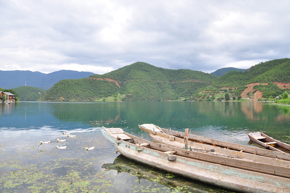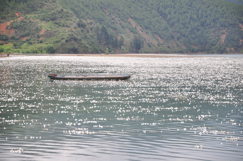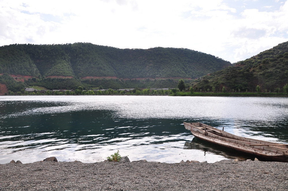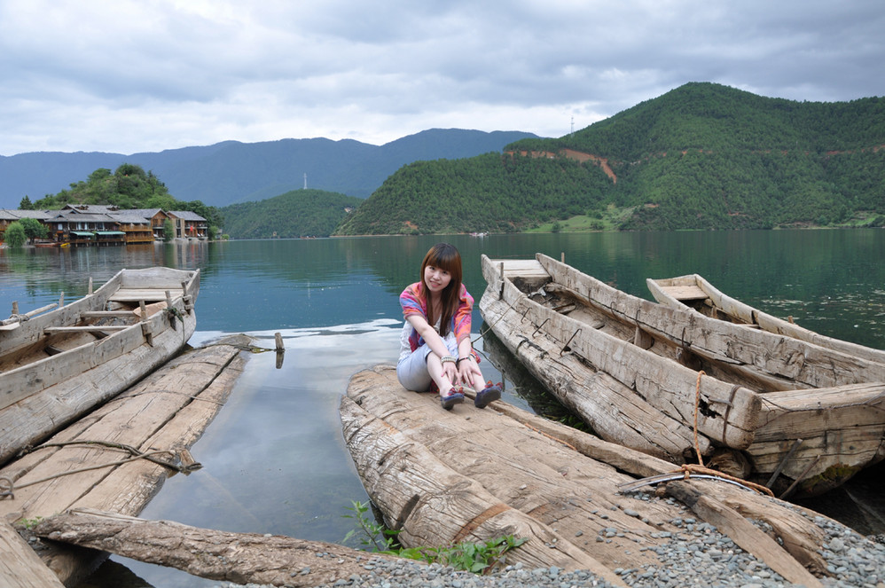收拾完毕后,到处逛逛~外加划小船~猪槽船是泸沽湖 湖面上的唯一交通工具,湖边最能经常看到的就是它了~坐上小船,泛舟湖面,感受大自然的气息是多么的惬意!