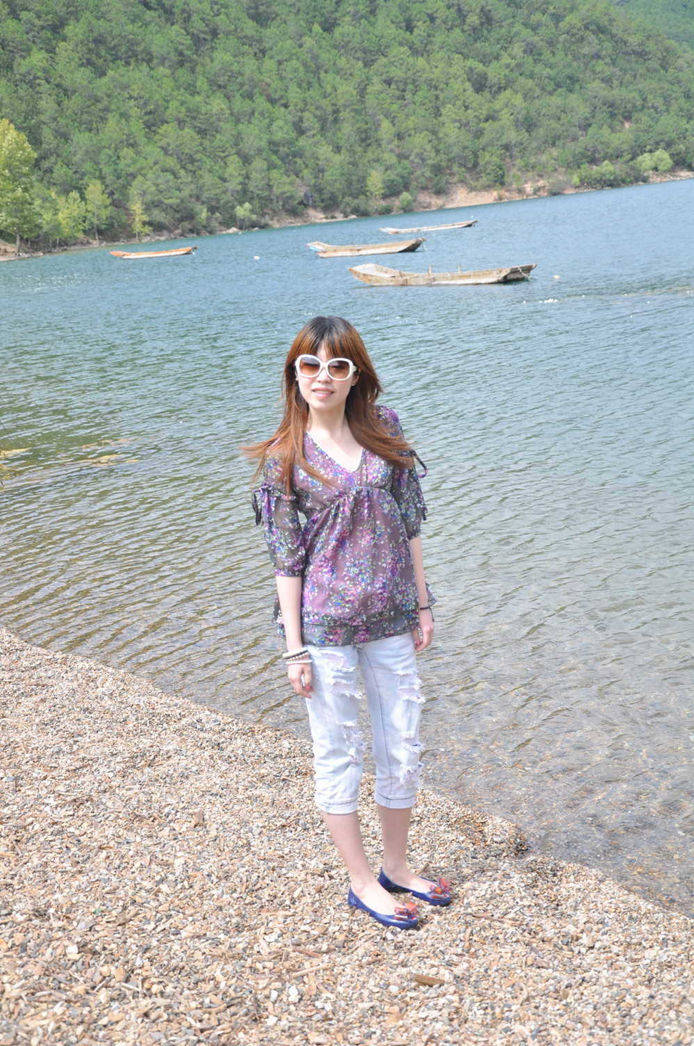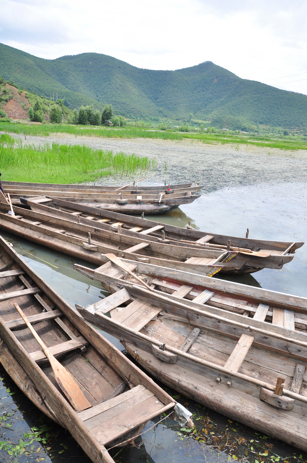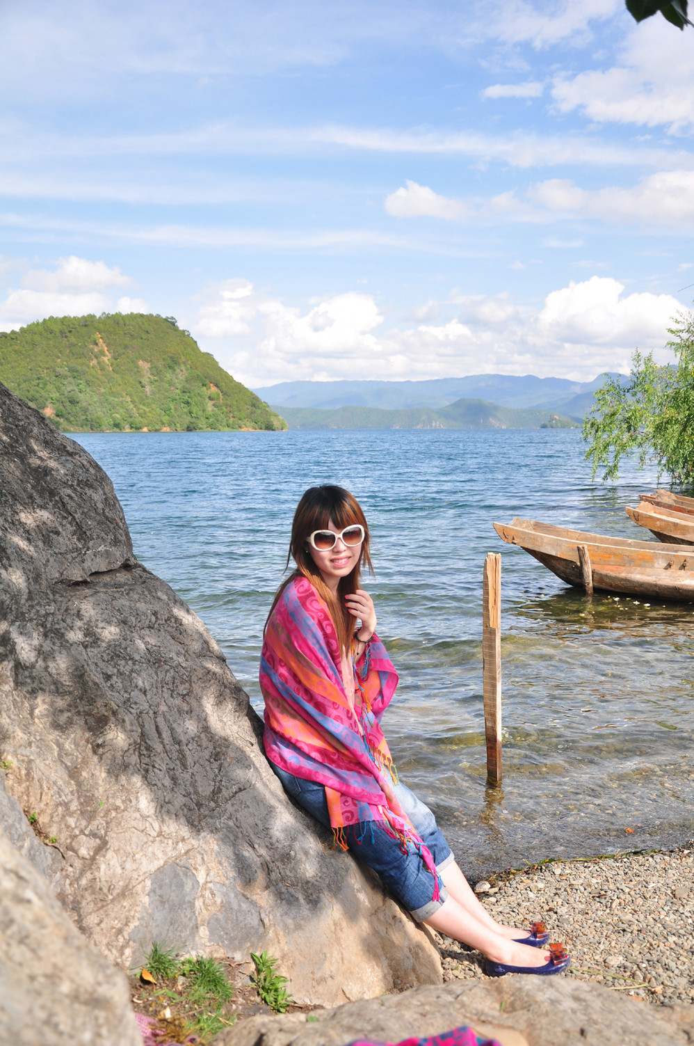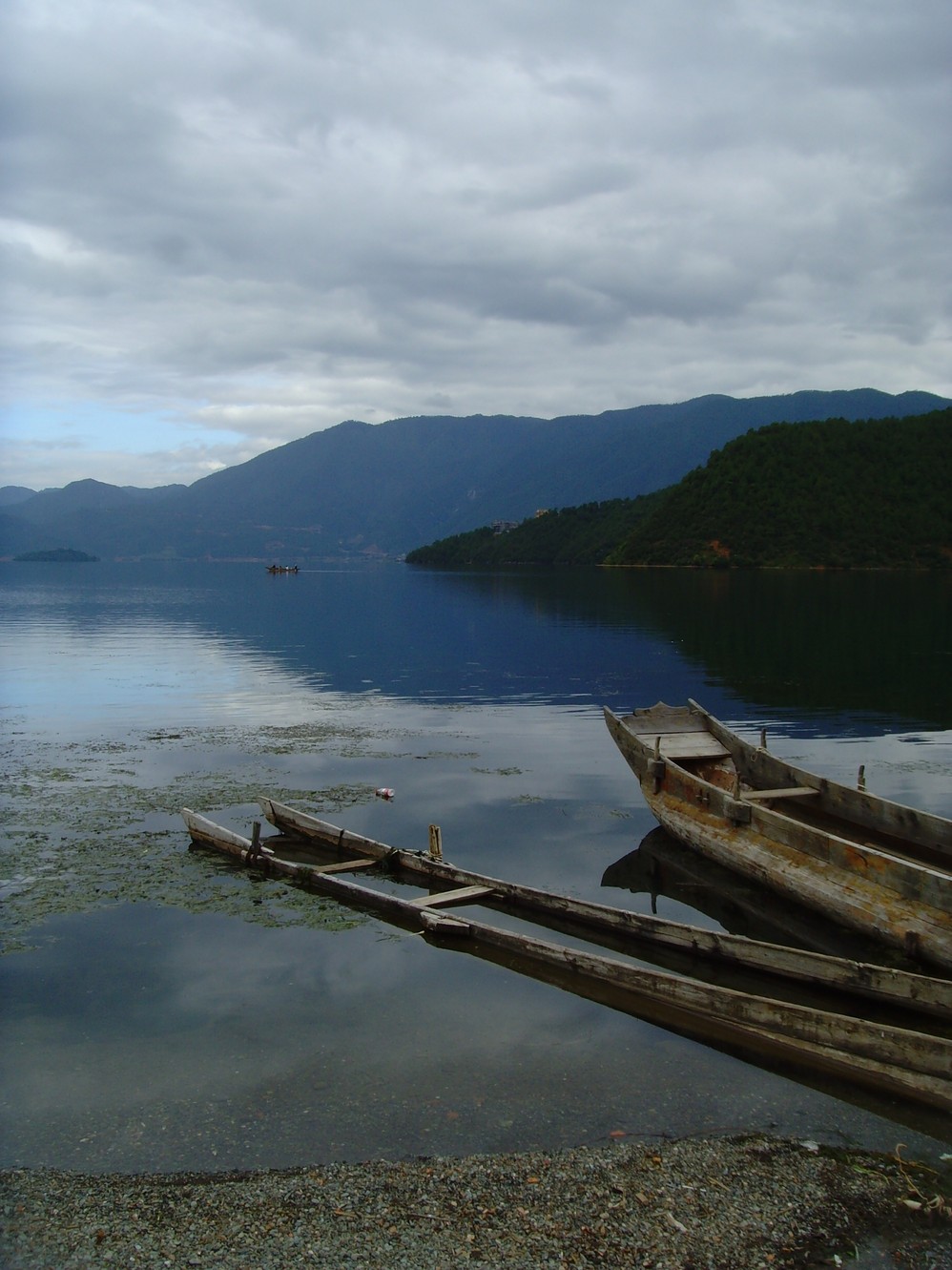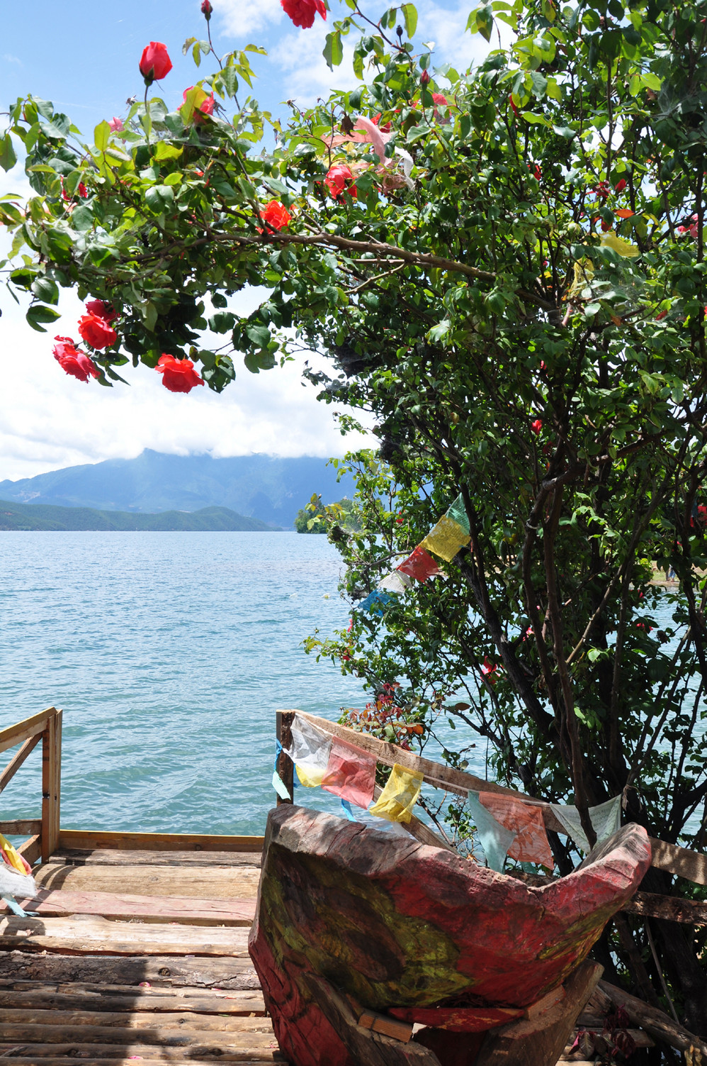 收拾完毕后,到处逛逛~外加划小船~猪槽船是泸沽湖 湖面上的唯一交通工具,湖边最能经常看到的就是它了~坐上小船,泛舟湖面,感受大自然的气息是多么的惬意!
