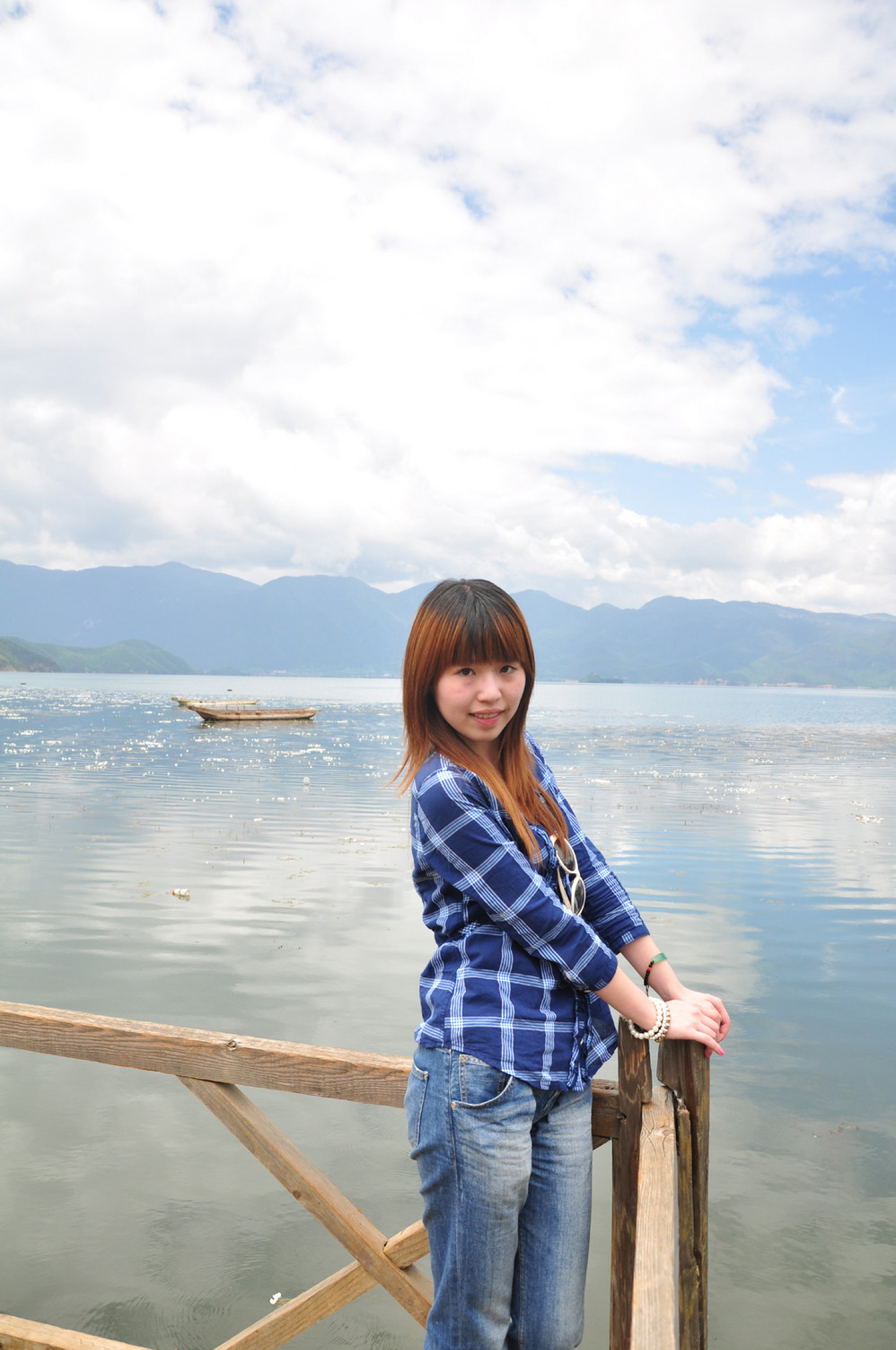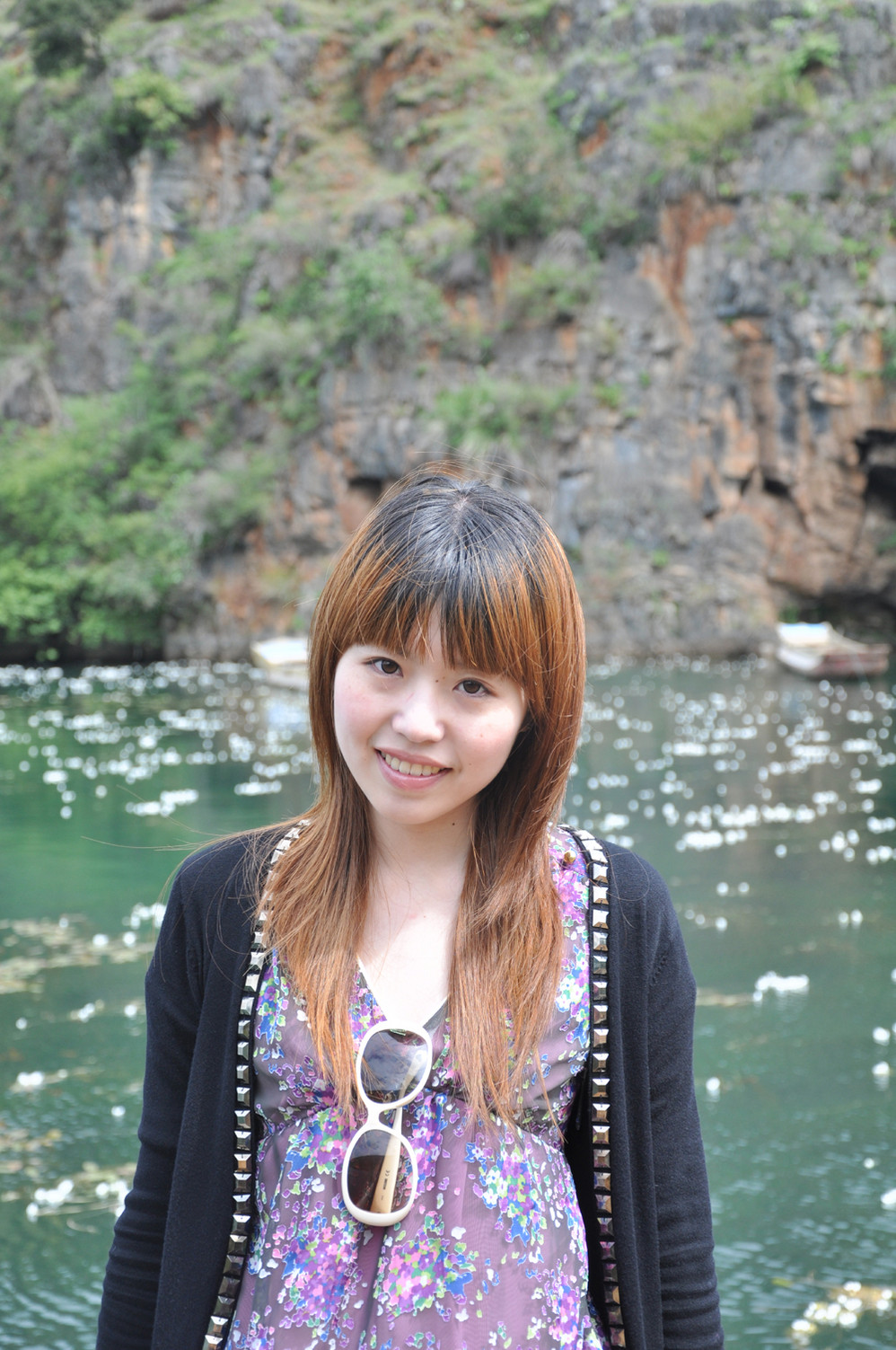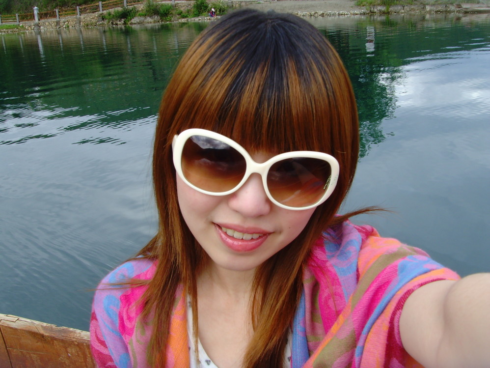 泛舟湖面也不忘自恋一下~