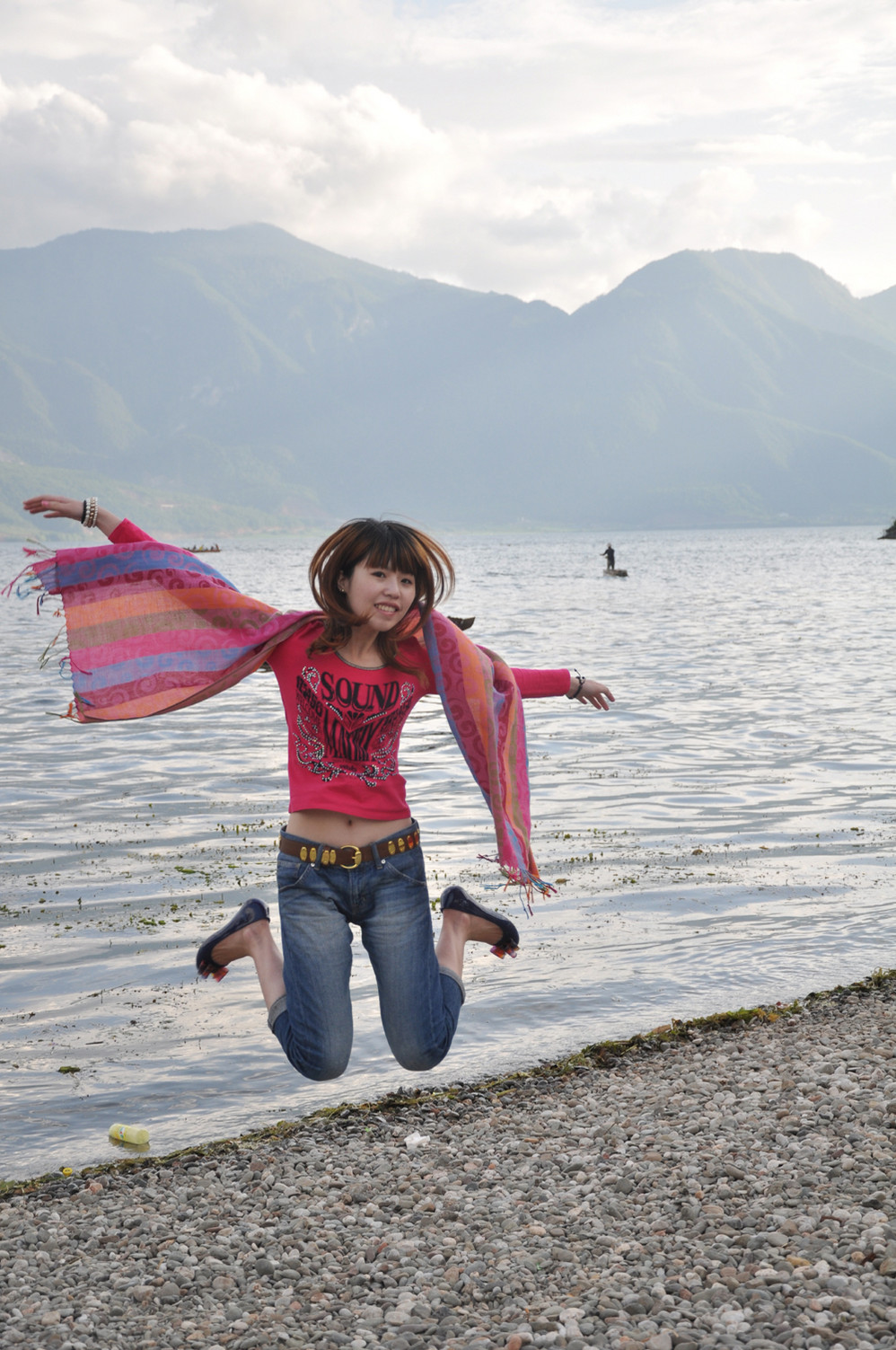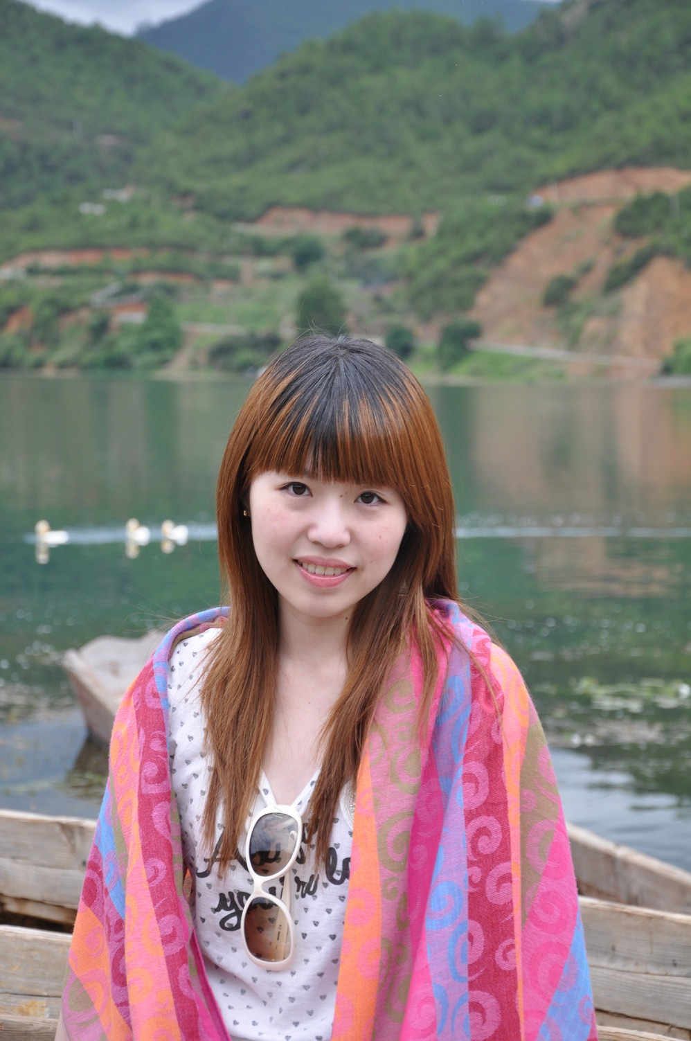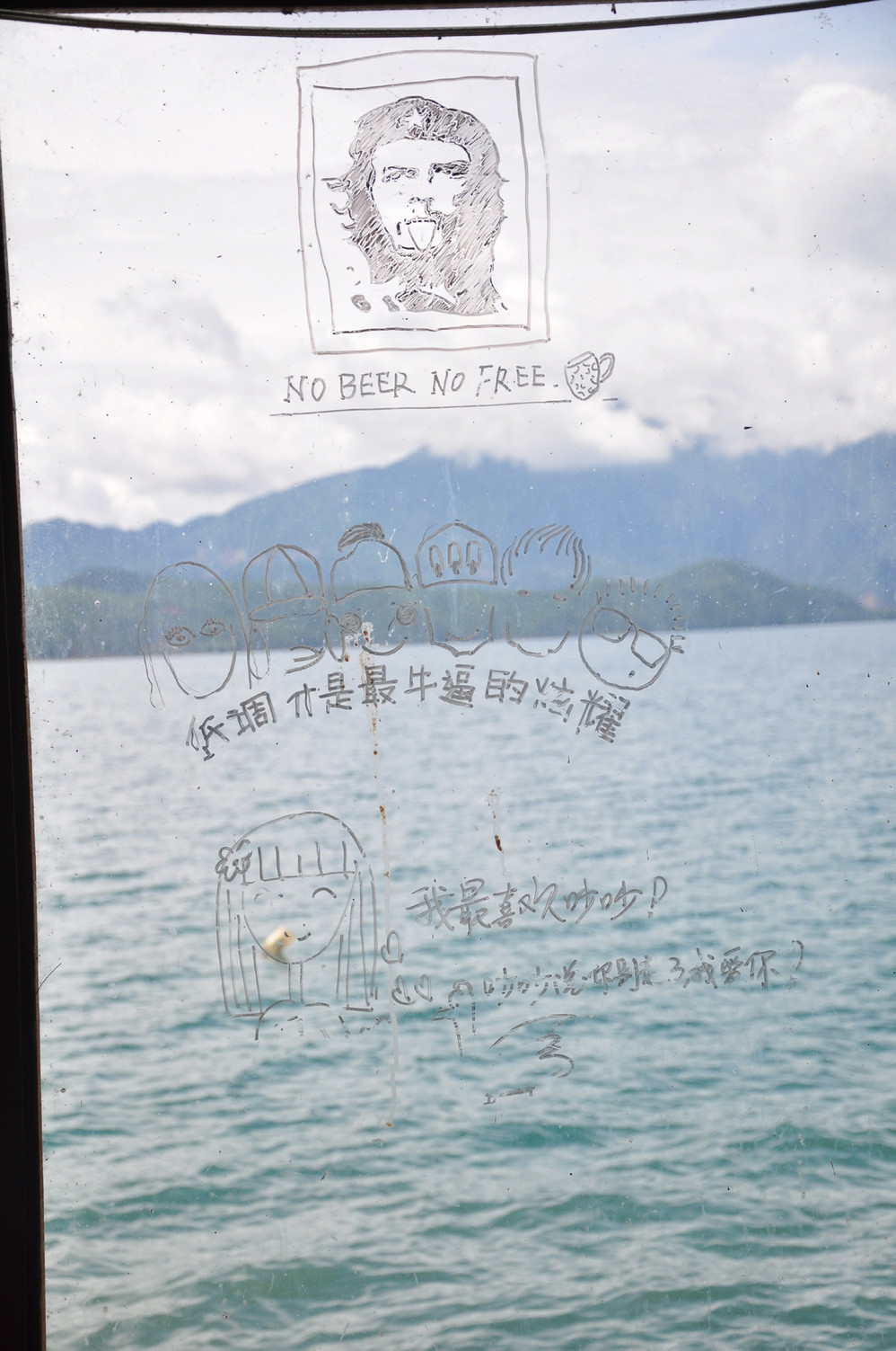泛舟湖面也不忘自恋一下~