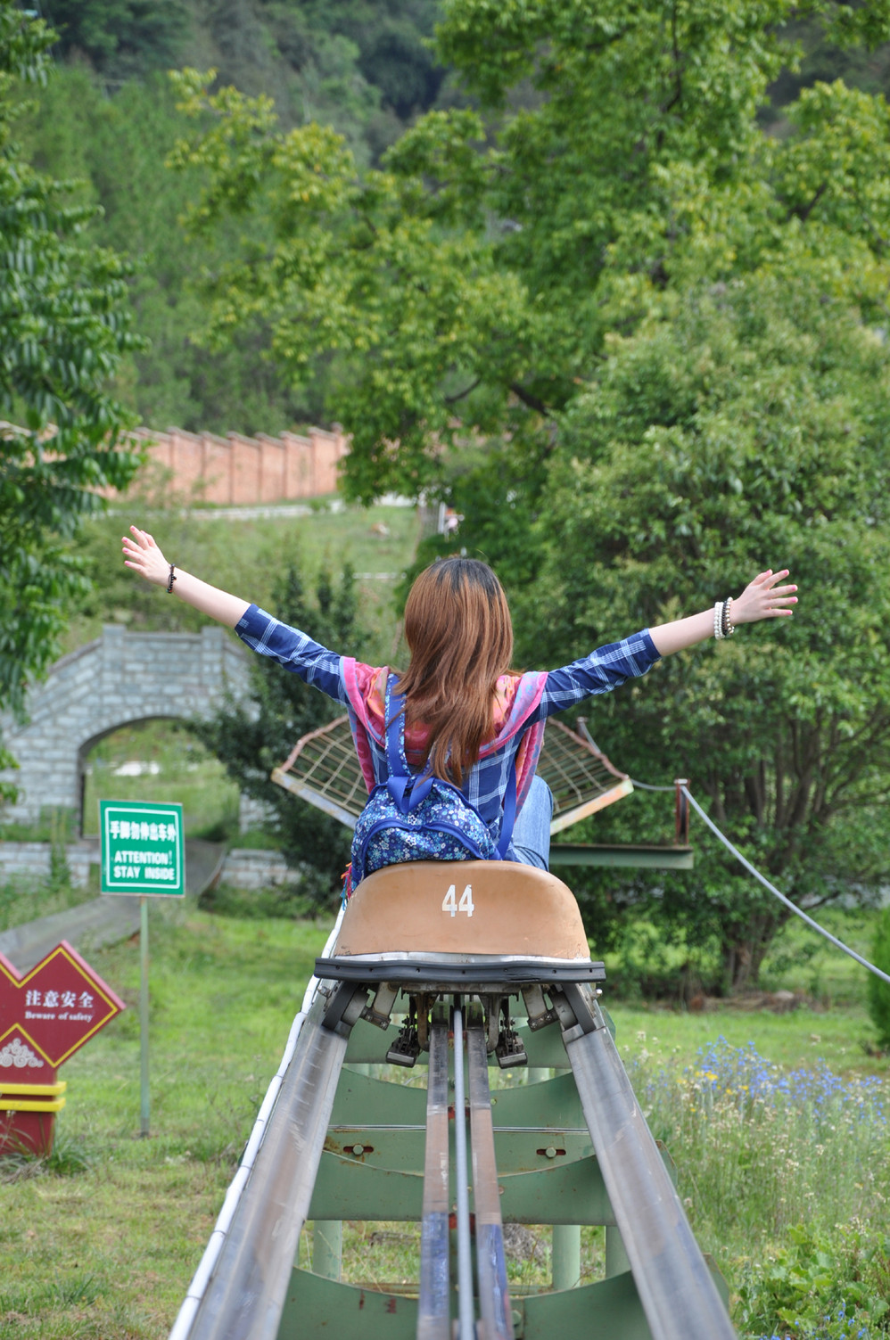 女神山索道有点特别,缆车之前需要坐滑道上去~