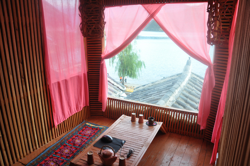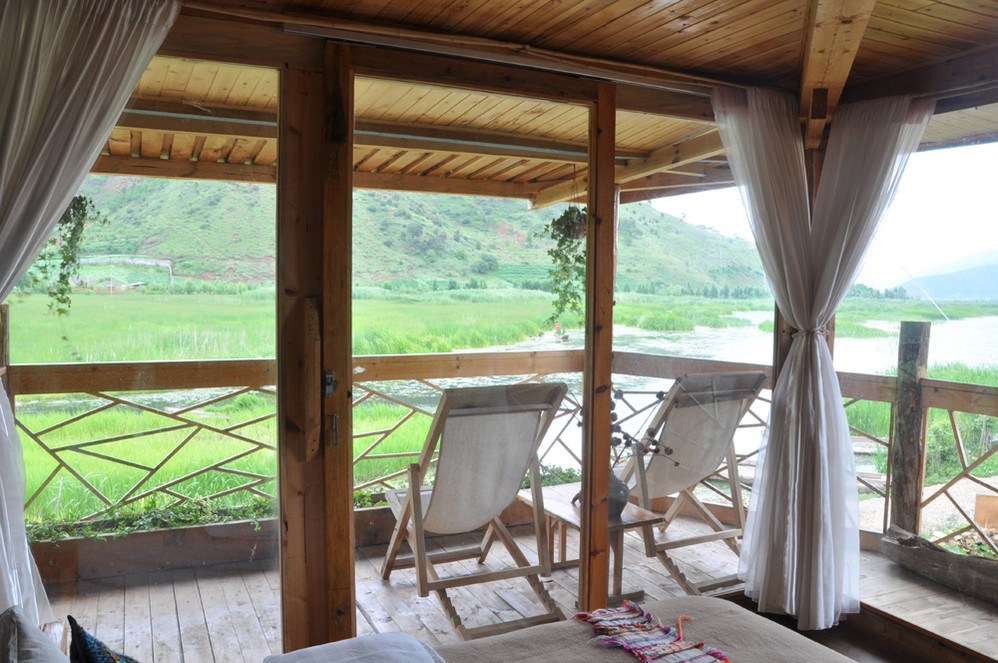 我们定了客栈的复式跃层湖景套房,一打开房门的一瞬间就爱上了,一楼的阳台对着无敌的湖景,吹吹胡风,太安逸了!