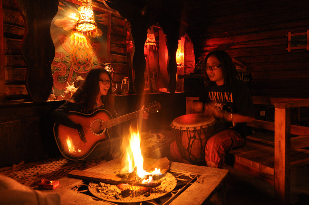 晚上在客栈的祖母房烤火~我们和客栈的另几个住客还有老板一起围坐在火塘边聊天~唱歌~人生太美好了~