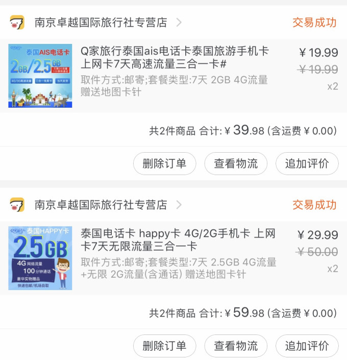 电话卡,之前做攻略说happy卡信号覆盖没有ais那么强。就买了两种卡,旅途结束根本没有用到ais卡。并且happy卡抵达泰国以后插上就可以用了,ais还有一个注册缴费程序,虽然不贵但是麻烦。所以我建议大家只需人手一张happy卡就足以了。