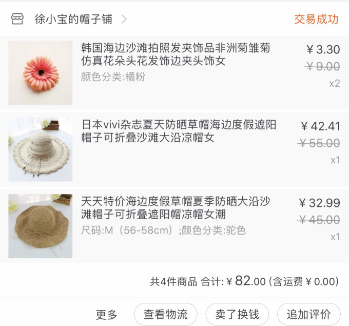 帽子不仅是为了好看,更是防晒。头发也需要保护的,同时还护住了自己的脸xoxo。花是为了凑单买的,之后也没有用到。