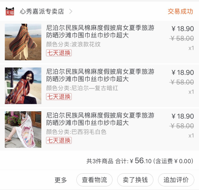 我和阿诗另外还买了以下这些东西(没有将衣服店铺截图,因为觉得质量不太好。大家觉得衣服好看的话可以去网上搜搜,不贵好查到)