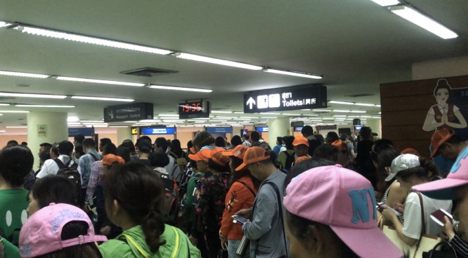 抵达曼谷以后,人真的很多...巨多。还有几个旅行团的在我们前面,但是落地之后都会有中文指示,先是落地签排队口,往前再走几个窗口就是安检的地方。没人查是否带了20000泰铢,在等待的过程中就可以把手机卡换好。
