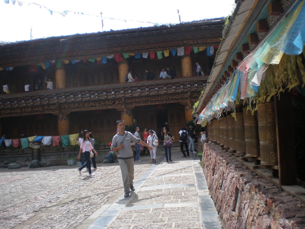 古城里这幢藏族建筑就是典型的藏民房屋风格。富裕起来、并且定居下来的藏民家家都盖这种高墙大院、古树粗柱的大房子。一幢房子下来比城里人买楼要贵多了。以现在的速度盖下去,香格里拉 的古树怕是不够用了。