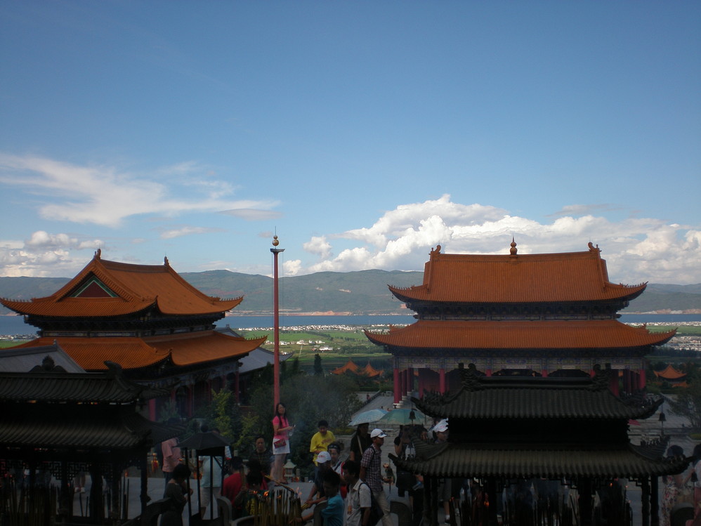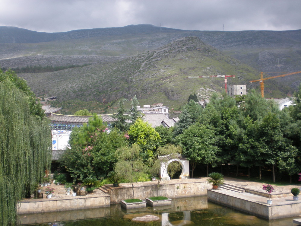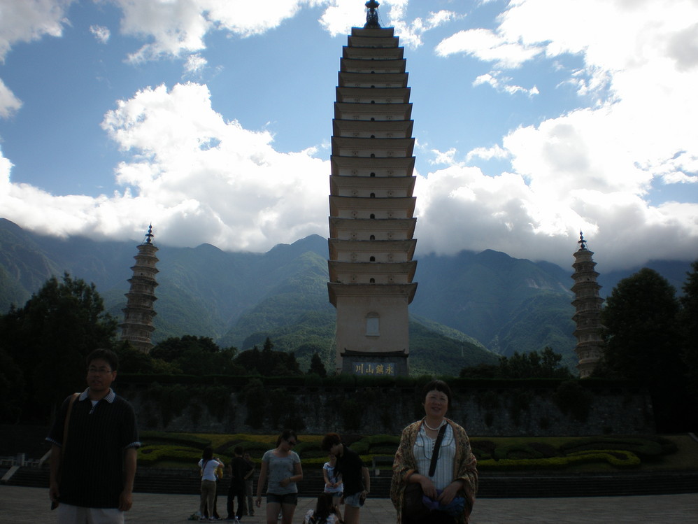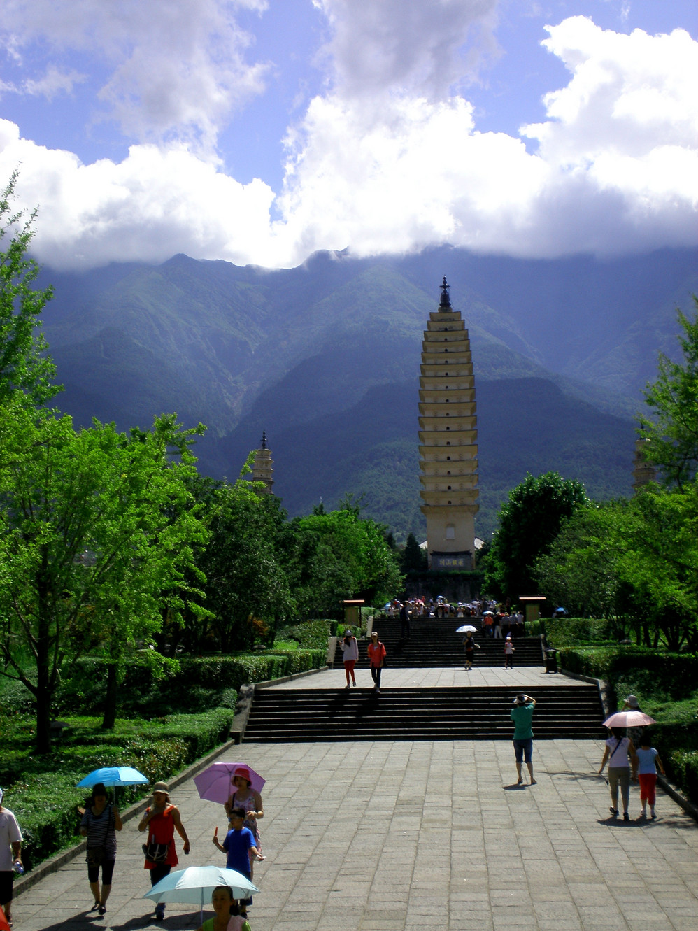 崇圣寺背靠着苍山。注意两个小塔的倾斜度。