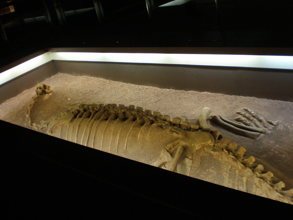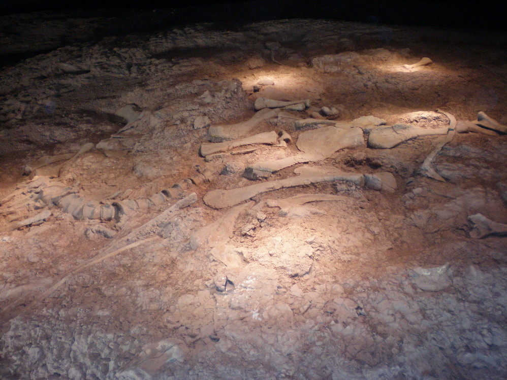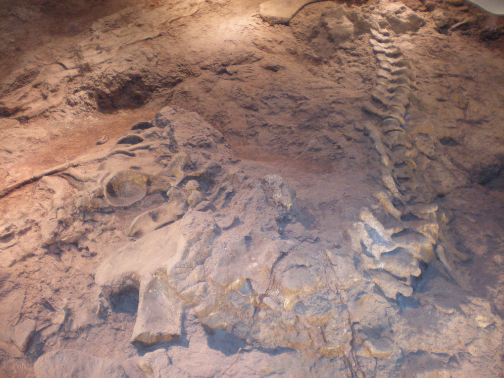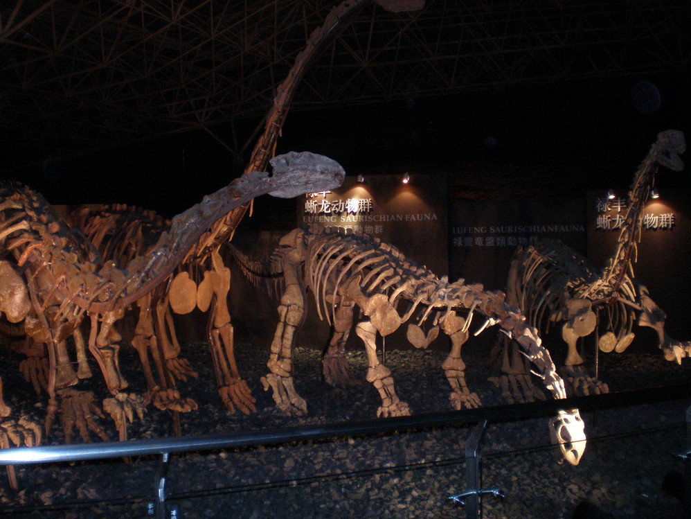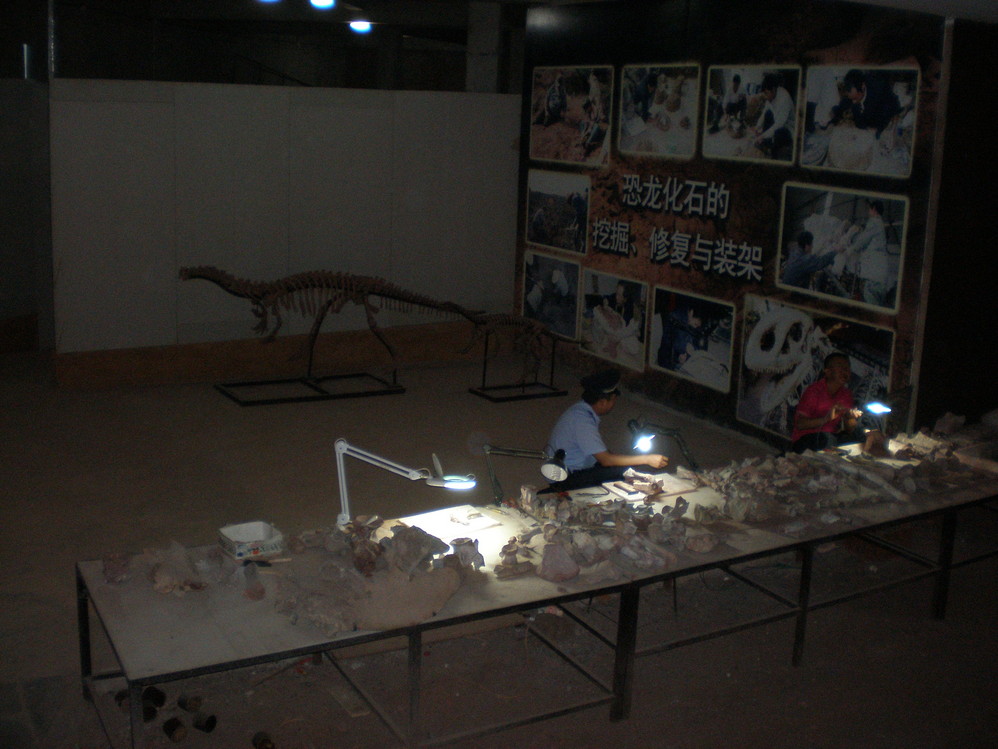 有一张是把一堆遗骨拼接成恐龙的工作人员的工作图。可惜峡谷人为设计的痕迹太重,植被没有很好的恢复,如果修缮一些那个时代的高低科植物就完美了,相信随着建设的推进和完善会做到的。