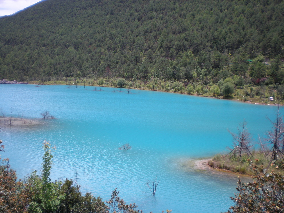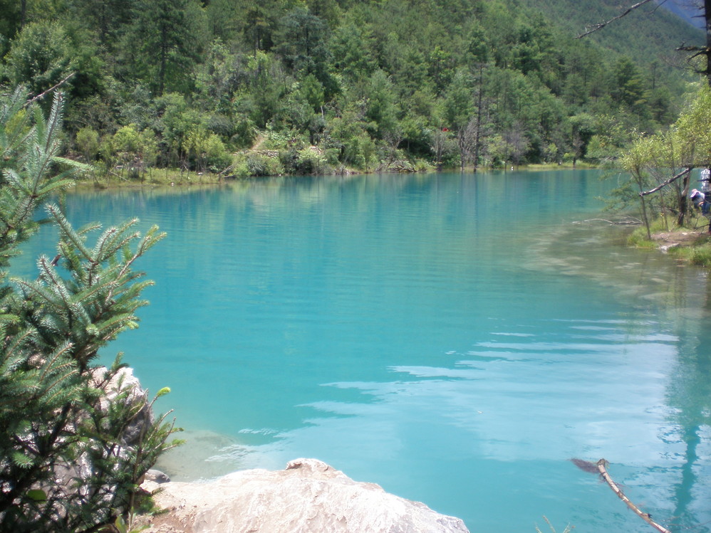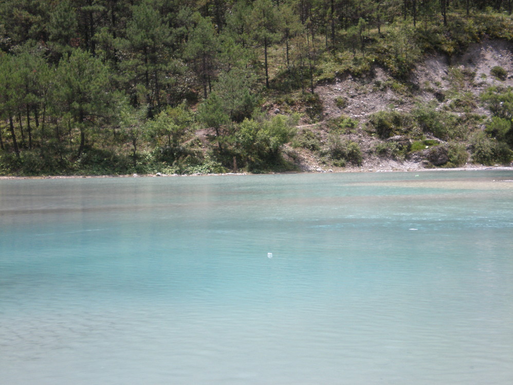 白水 台蓝月谷的水来自../travel-scenic-spot/mafengwo/15943.html(玉龙雪山 ) 化的雪水,含碳酸钙之类物质,河床和谷底都是白色的,在蓝天的映照下,水印深浅不一而由蓝变绿,胜似九寨。