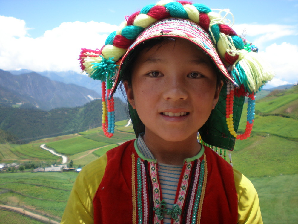 在去往../travel-scenic-spot/mafengwo/10482.html(香格里拉 ) 的路上,路径的彝族村落。记住这张笑脸,可爱吧?来车就凑到面前,等你照完相就跟你要十元钱,还有一个小弟弟。