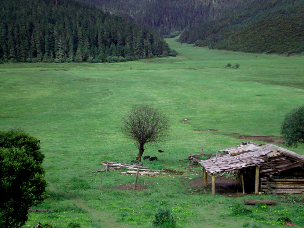 5. 跟团的不利因素就是不能随时停车拍照,一路上的靡丽风景没有留下;高原原始深林近年找到严重破坏,被砍掉半边坡的大树 根桩裸露;新定居下的藏民的新屋,要用数十根两到三人才能围过来的千年古树做支柱,这些预示着高原深林何去何从的照片也没留下,实在是很遗憾。不过,沿途可见的一切会有来者留下记录,想找能反映这种情情况的照片不难。希望后来的有心人能把这一缺憾补上。