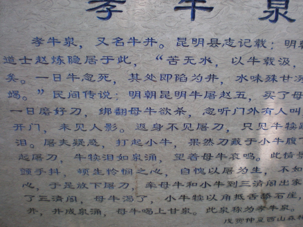 西山公园里的一口井是一头小牛为报屠夫未杀母牛之恩,用牛角挖出来的。