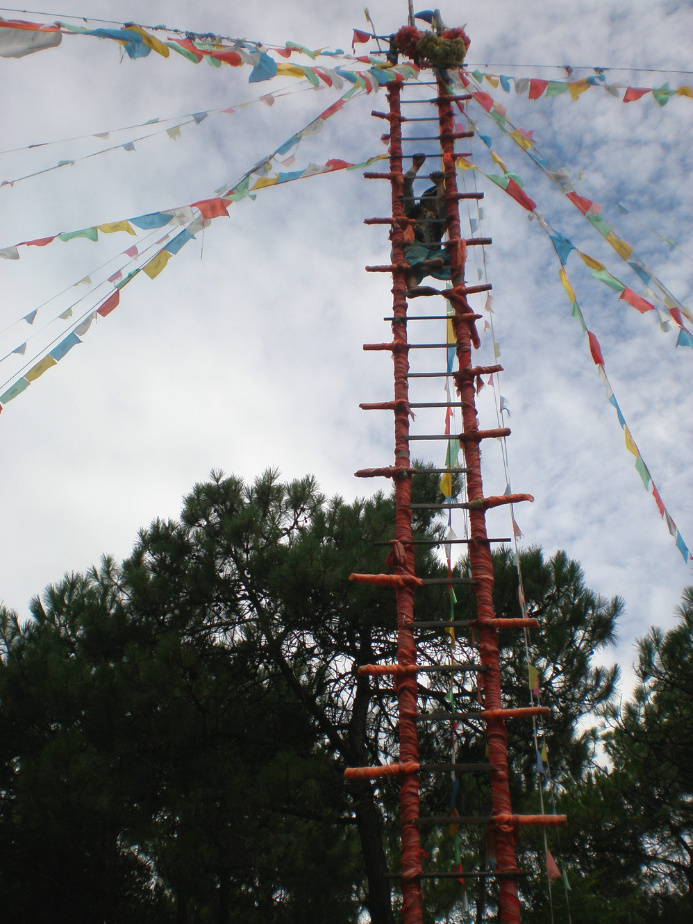上刀山,高梯的登都是锋利的长刀。当然还有下火海,赤脚踩在烧红的铁犁上,还用舌头舔烧红的铁仟。这是男人的成人礼。