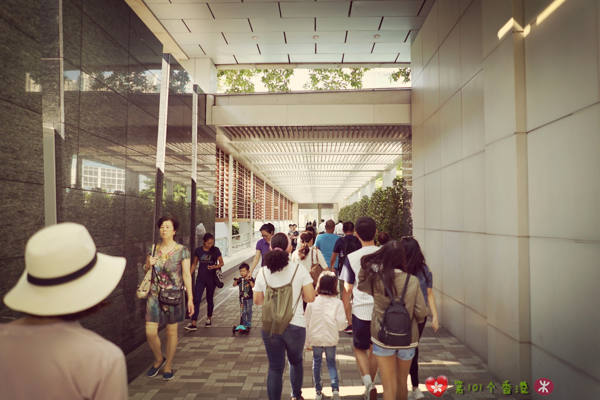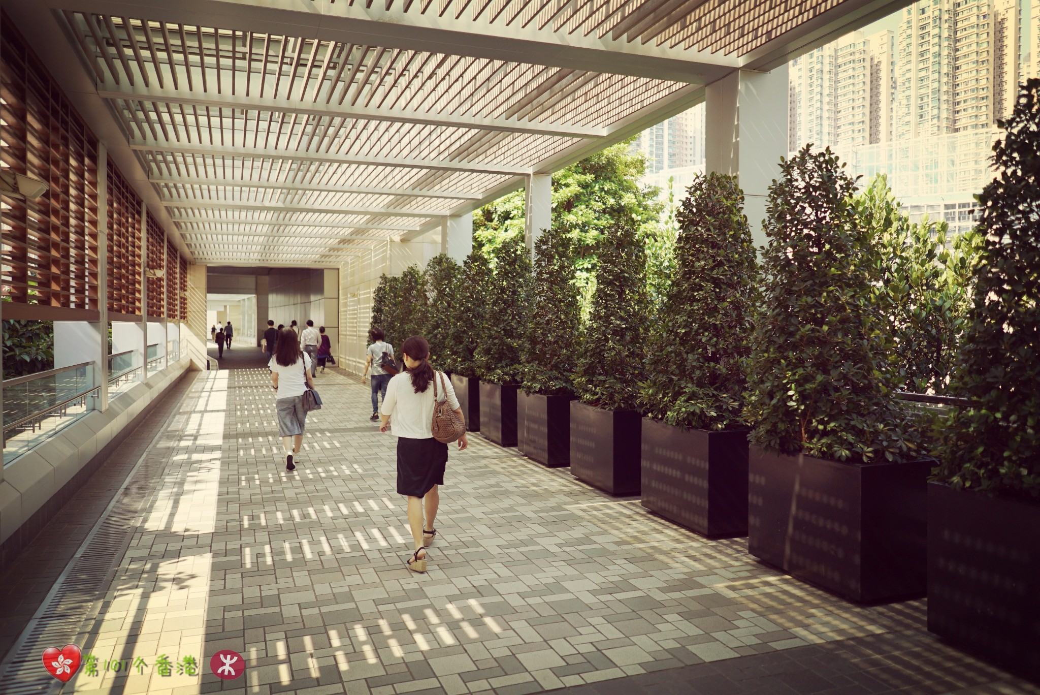 走出奥运地铁站,会经过长长的天桥,以及一个小型空中花园,这里在港人休假时,是菲佣小聚的场所之一。