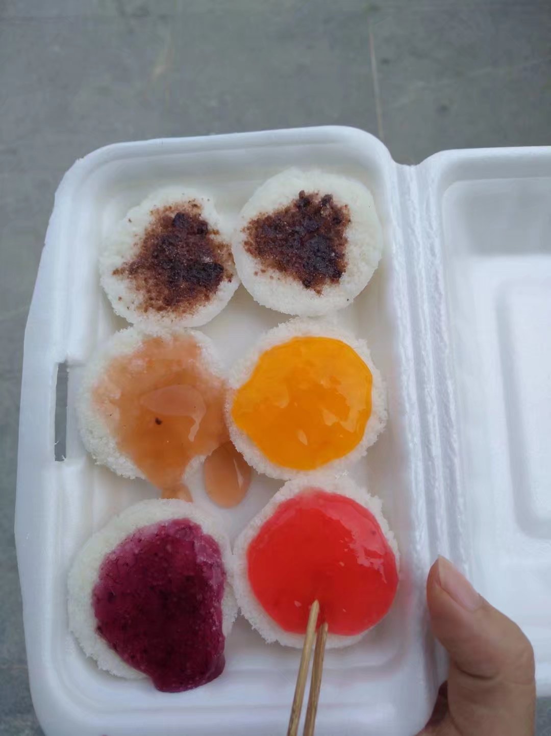 路边看到了嗡嗡叫的熟梨糕,吃一个当午饭,因为不饿