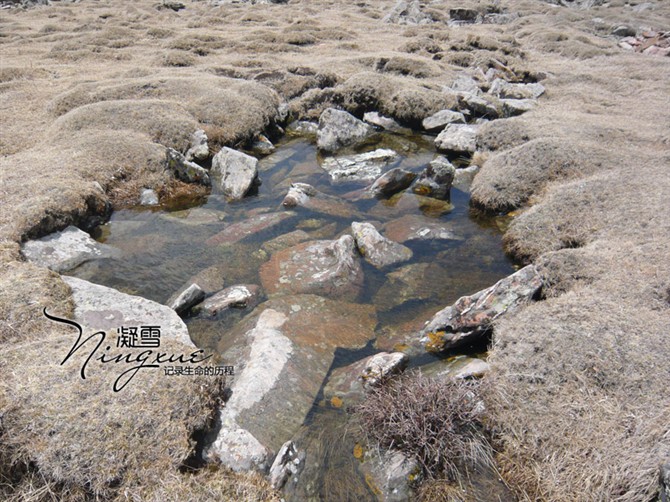 这是在山顶上,开始我以为是泉水,后来听说这是山上渗出来的水,很清很透。因为我们去的时候,天还有点凉,山上的草还没有绿,但是走在上边软软的,舒服极了。