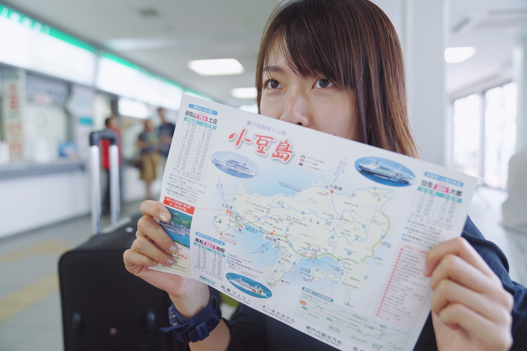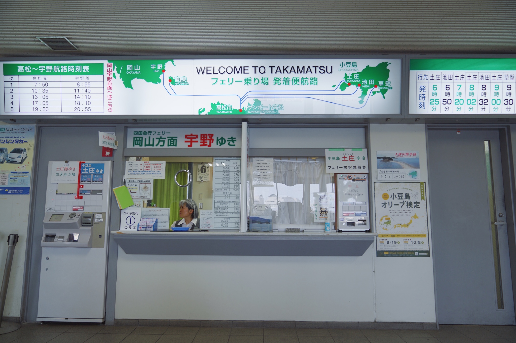 出了机场直接在机器上买好大巴的车票,只要大巴坐满了就开车,35分钟就可以到市区还有免费高速Wi-Fi。因为第1天是选择住在宇野港的一家airbnb,在宇野也有几件艺术作品想要打卡,于是在高松港口买了船票直接前往。