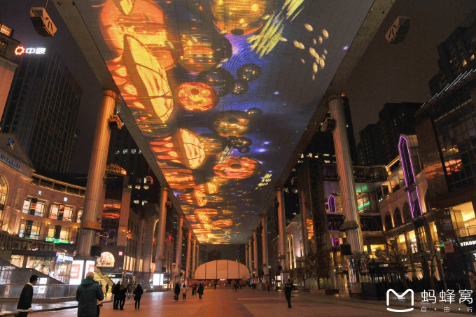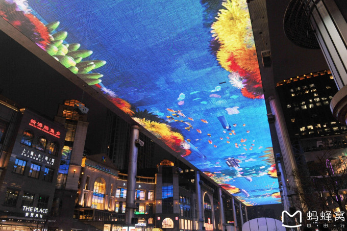 世贸天街的天幕得有十几岁了,有些灯管都不亮了Orz…好在不影响大景观,播放起来还是很爽的。