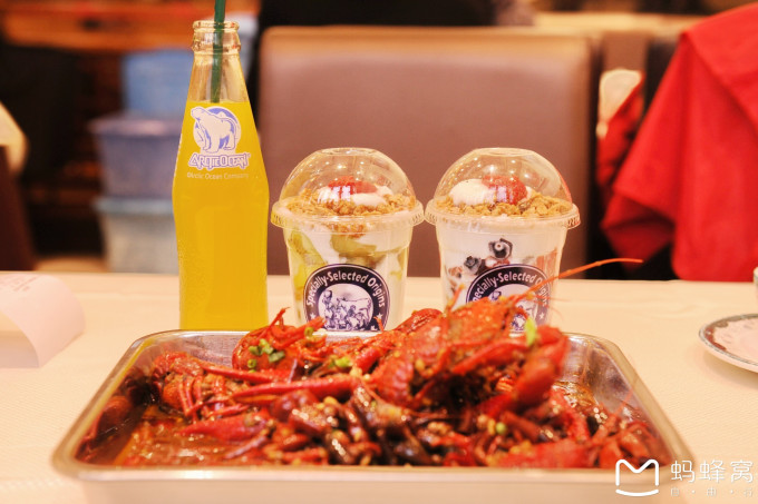 周五下午4点半到店,被领到了2楼,菜还没上齐就已满位。饭后看到楼下浩浩荡荡的排队人群超有成就感。同学第一次来,就点了最经典的簋街两大招牌:麻辣小龙虾和馋嘴蛙。搭配了大拌菜,烤生蚝,北冰洋。