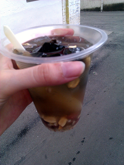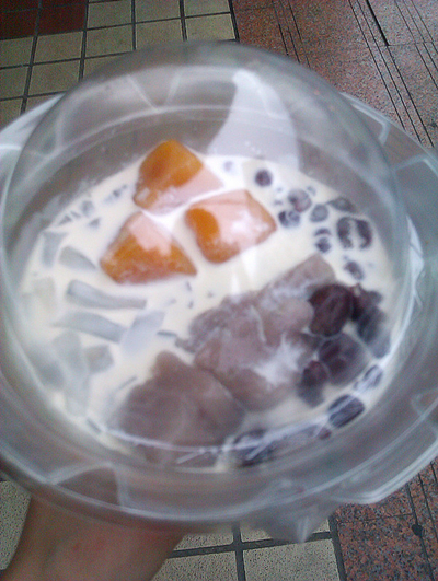 食物可能都拍得都比较一般,我是个很爱吃的人,于是嘛,食物都是匆匆忙忙拍了张就马上开始吃了。从这次起,我打从心底佩服那些面对美食还能慢慢拍照的人。这杯东西还不错,就是仙草的苦味有点重。我把我最爱的芋圆和地瓜圆吃完后...剩下的,好苦...