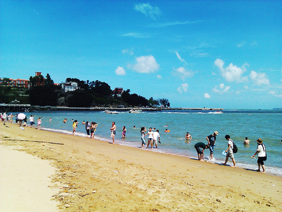 在菽庄花园 逛了大概有一小时吧,一出去就发现鼓浪屿 的沙滩 就在旁边。沙滩 不大,既然看到了,就下去走走呗。