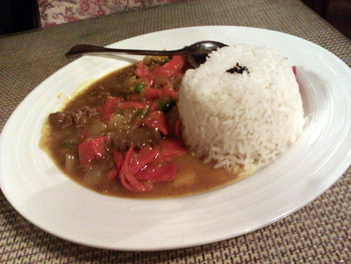 离开的时候才五点半,离音乐会开始还早着呢。俺发现自己这两天都没有吃过正餐—饭,都是吃小吃就吃饱了。于是就打算找家店吃餐正常的晚饭吧,就随便进了古追奶茶 店了个咖喱牛柳饭。