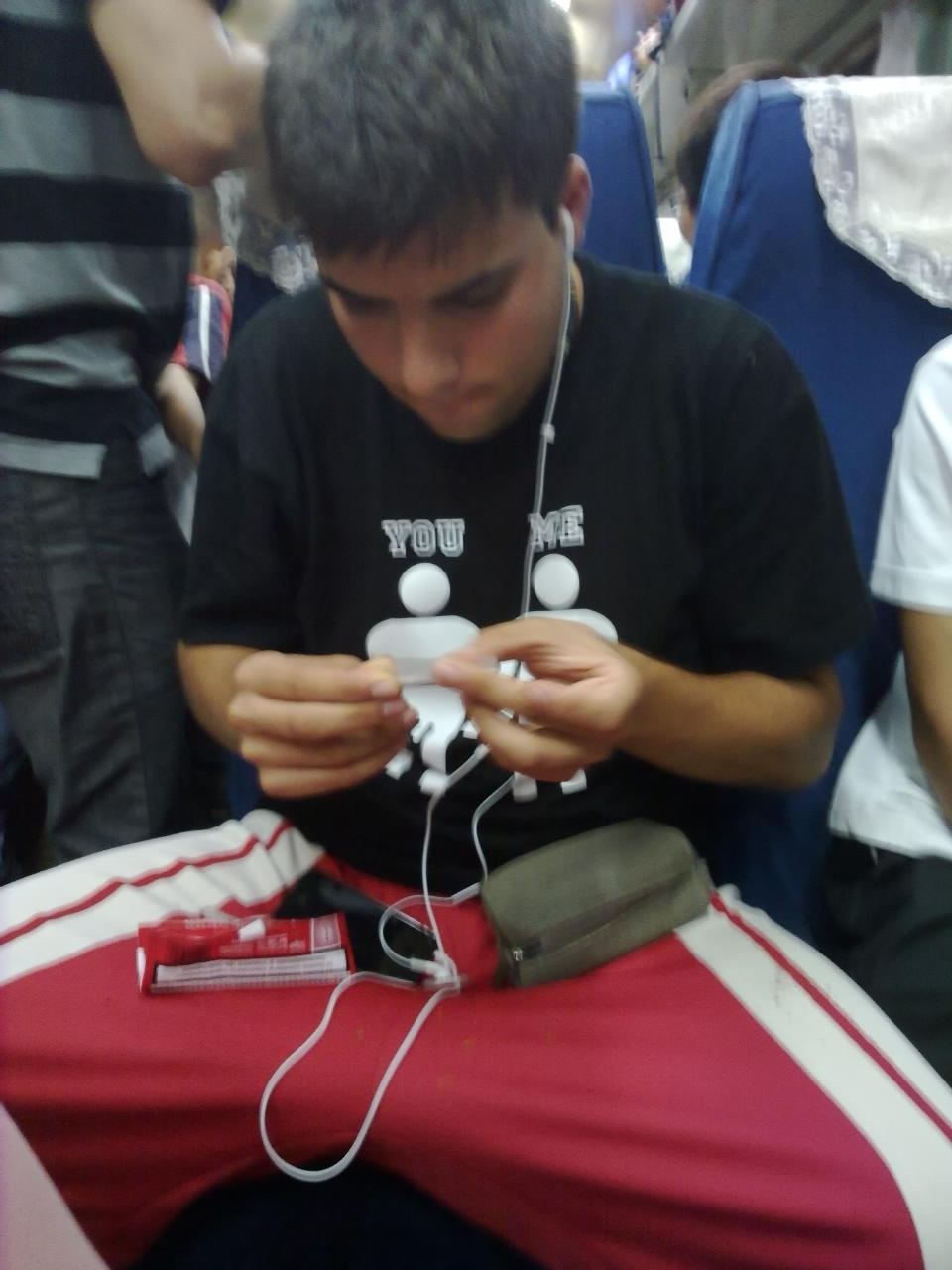 找到座位后,发现有几个老外坐在自己周围,用英语打了声招呼便坐下上微博。刚上车,大家都很疲倦的样子,要么在玩手机,要么在打瞌睡。稍微晚点儿,列车员开始行动了,卖饭、卖饮料、卖零食、卖杂志、卖玩具神马的,就凭那嗓子不去献身祖国音乐事业,真是浪费音乐界人才。陆陆续续地,他们推着小车从一节车厢到另一节车厢,乘客的情绪被带动起来了,顿时车厢内部变得闹腾起来,我也用简单的英语和几个老外攀谈起来。了解后才知道,几个老外是西班牙人,在巴塞罗那上大学三年级,年龄比我还小。虽然没问,但我估计他们正在进行大学的“实践课程”。西方的大学普遍要求学生在大三用一年时间去外面实践,认识这个世界,当做是一门课程,而很多学生选择到大多是发展中国家的亚洲或非洲旅游。也许是看到我和老外聊天很有趣,周围的人都凑了上来听,偶尔还插话说些诸如good、yes、no等简单的英语,非常有趣。