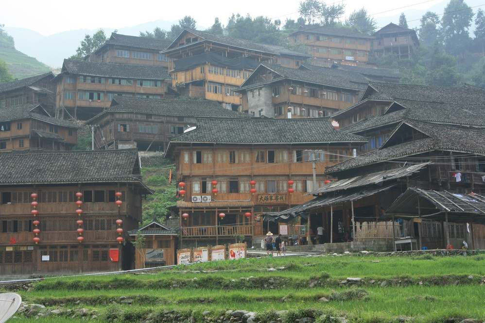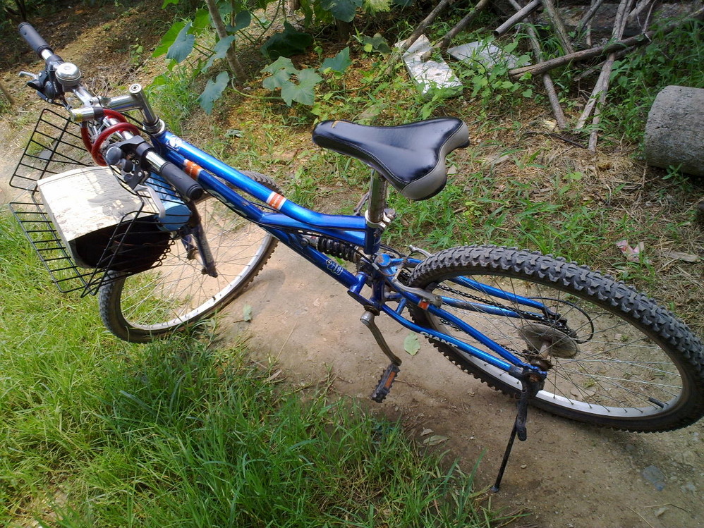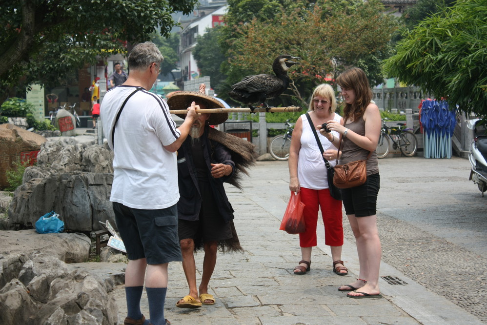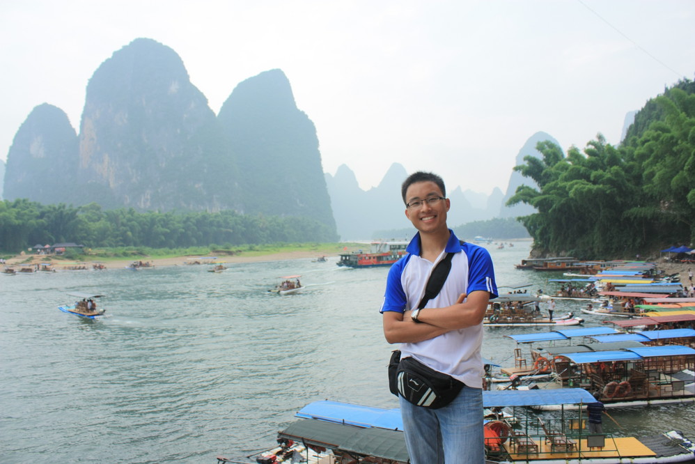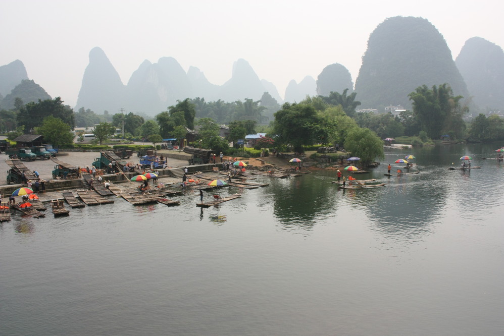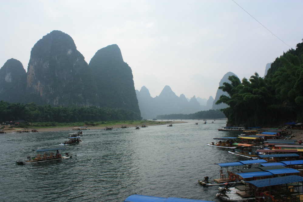 首先在旅舍门口一单车租赁处租了一辆山地车,老板开价20,聊了几句把价格砍到15(另外要提交100元押金,晚上7点前要归还)。骑着自行车先把整个阳朔县逛了一遍,也许是旅游旺季,街道上人多吵杂,感受不到阳朔原本的风味。