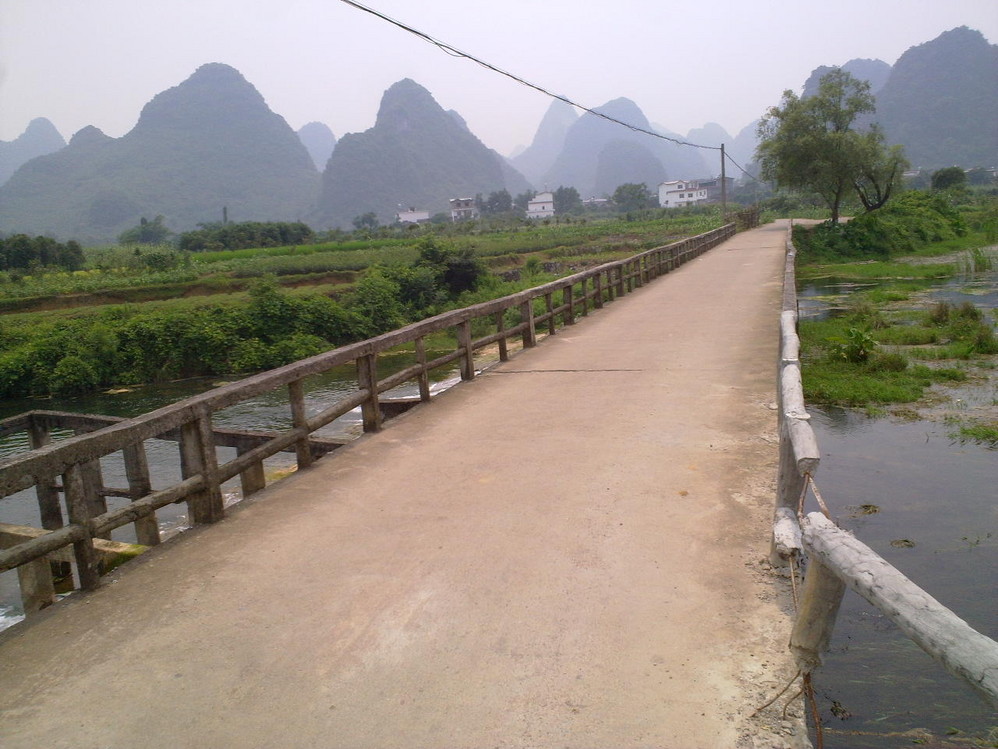 阳朔县不大,骑着自行车1个小时就能逛完。随后在路边一家小店吃过午饭继续上路,往桂林方向骑。原本是想骑到遇龙桥再往回骑的,结果没找着却误打误撞拐进了另一条岔道,来到所谓的“世外桃源”。