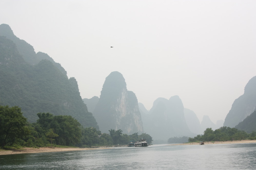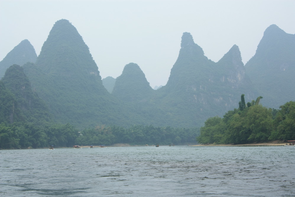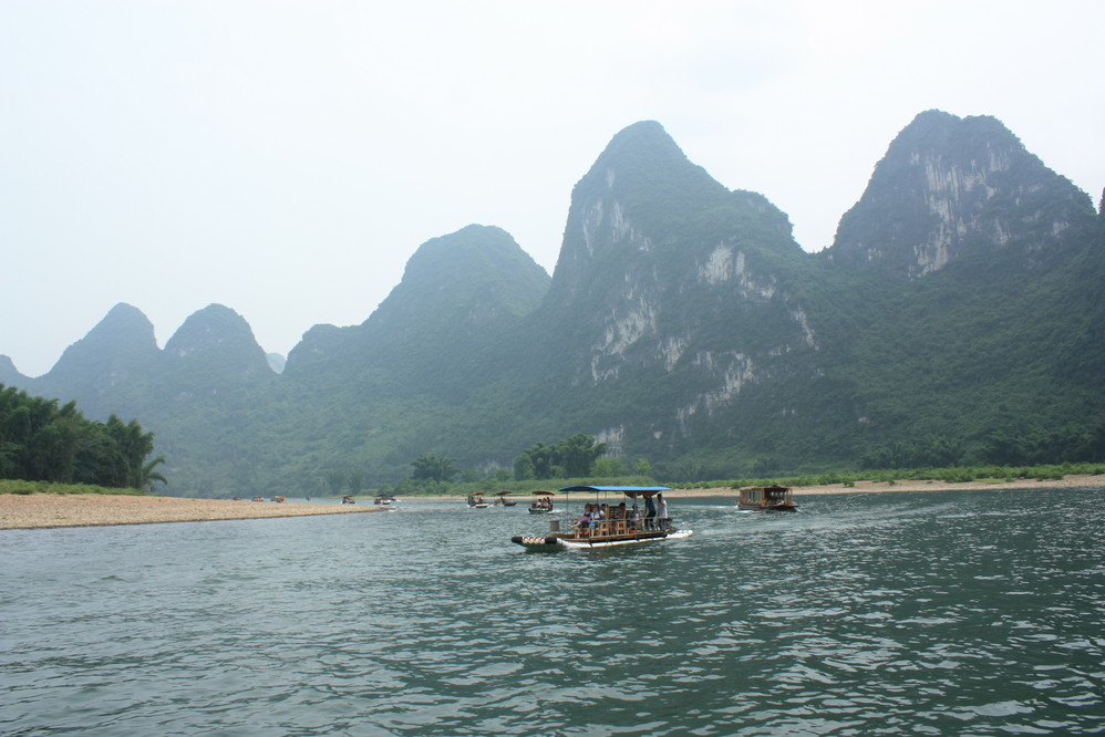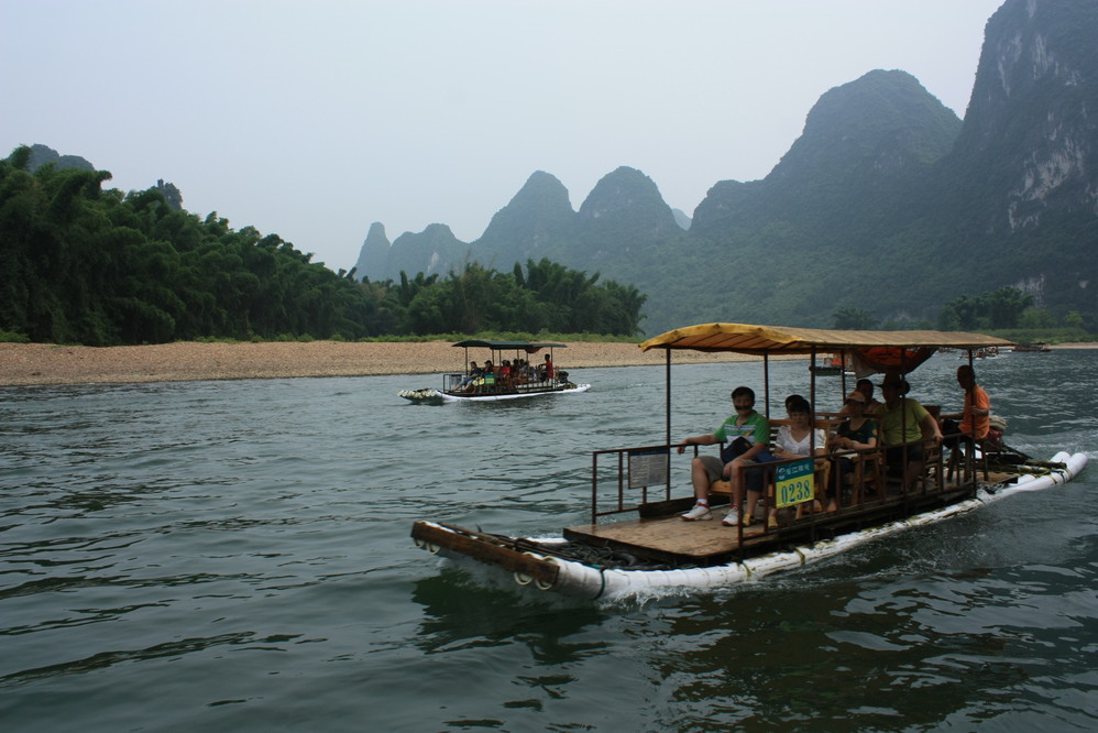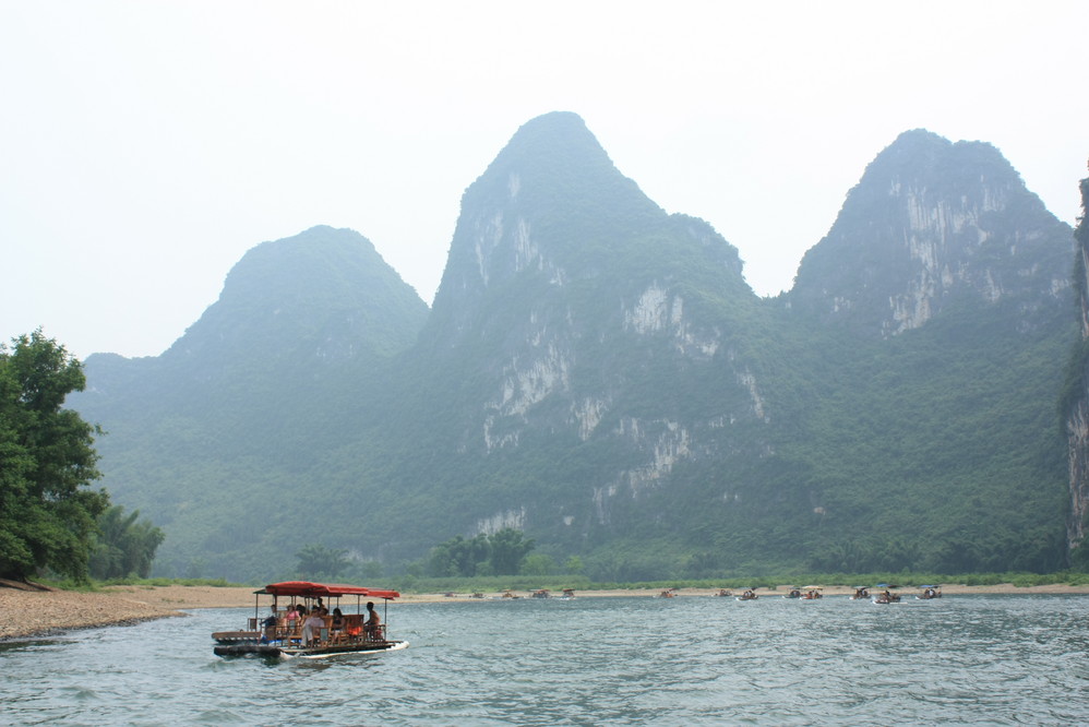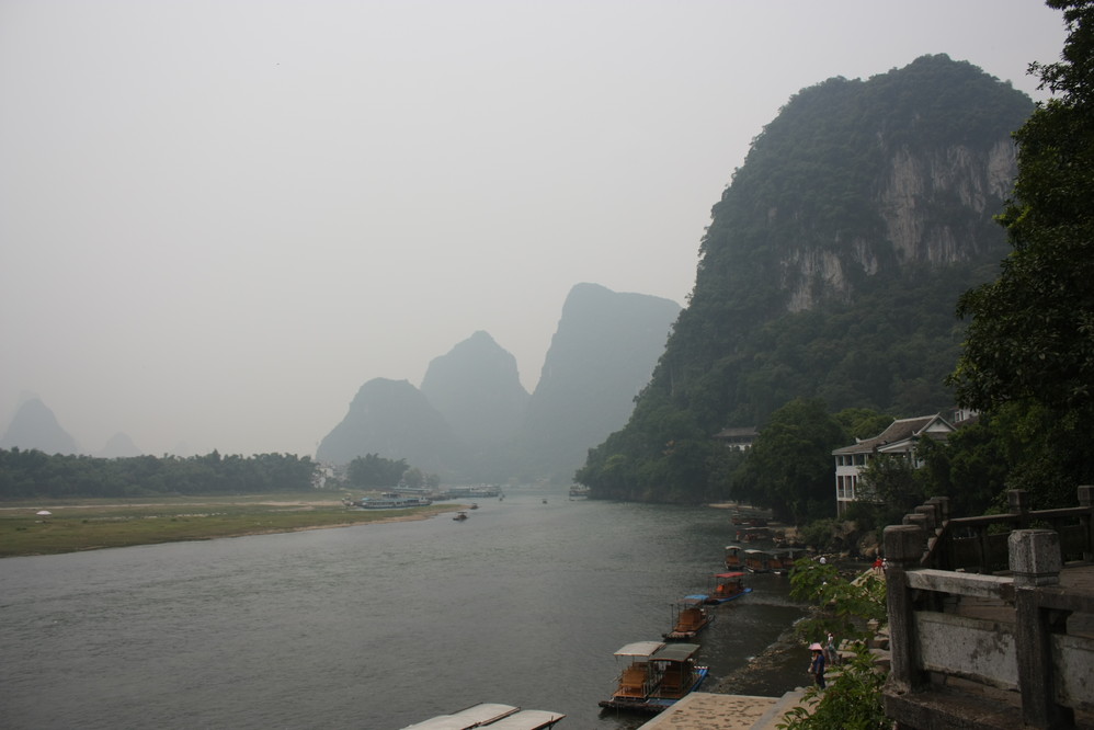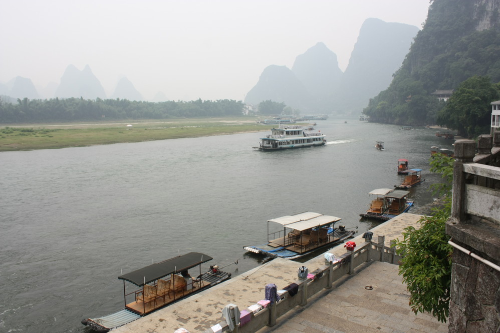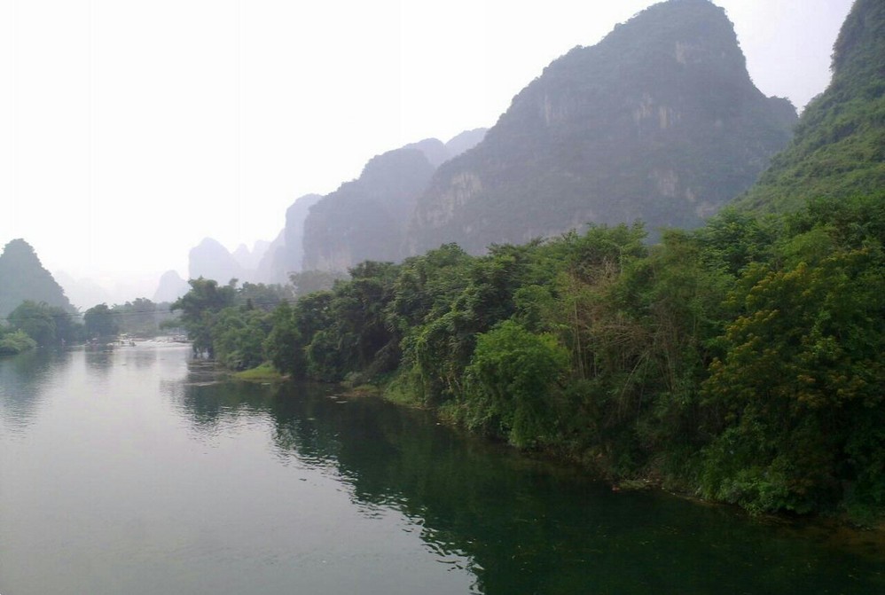 早餐过后,在火车站前上了桂林-阳朔专线(15元)。由于早晨车流小,道路畅通,一路上没出现太严重的堵车现象,不过在途中有几个站点上上下下的消耗了些时间,这里强烈建议驴友不要在火车站外搭乘去阳朔的专线,而选择坐离火车站10分钟路程的汽车客运站的大巴去阳朔,省时而少走冤枉路。