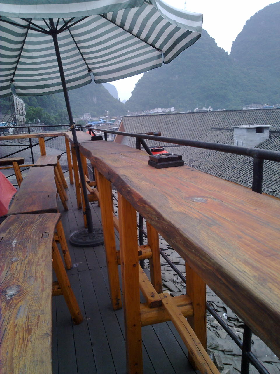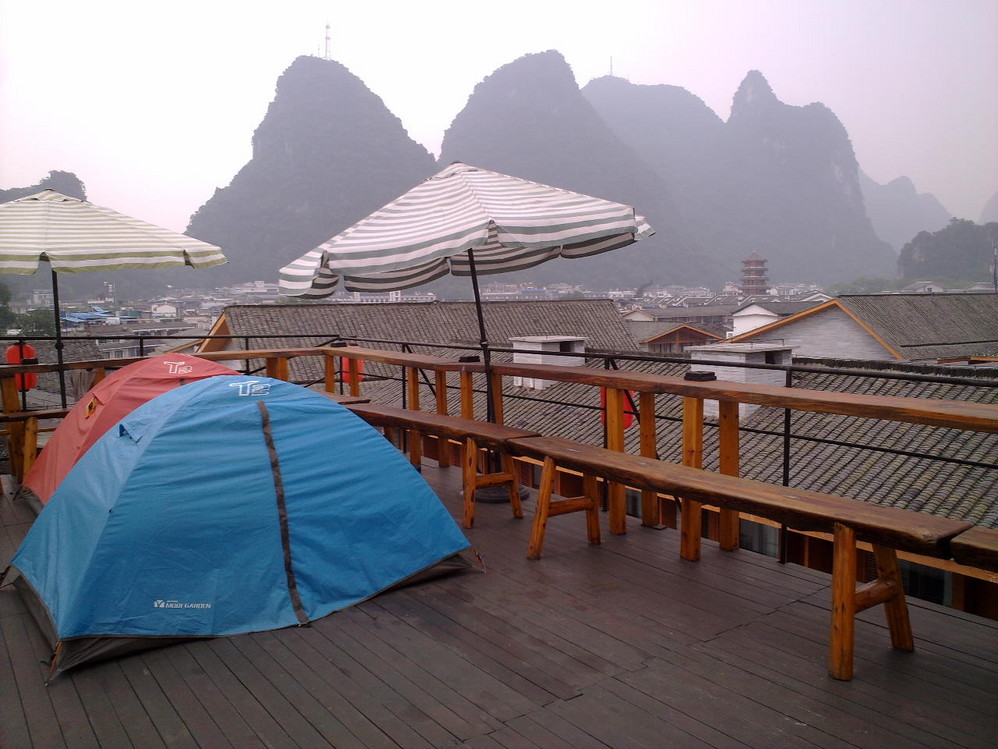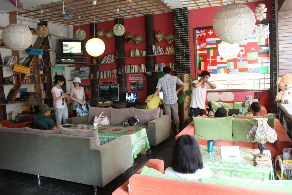 没一会儿就找到了之前在网上预定的旅舍——阳朔老班长青年旅舍。网上说这家青年旅舍是评价最好的,而且床位价格也适中(6或8人间,每个床位35元)。check in 之后服务员说睡我那床位的人还未退房,让我稍等片刻。估计那哥们儿昨天玩累了,让他多睡会儿也无妨,于是在旅舍大厅里转了一圈,拍了一些照片。我向来出门旅行住宿都是优先考虑青年旅舍,一来价格便宜适合我们这些学生驴友,二来里面聚集的都是一些旅游经验丰富或经历相似的驴友,交流起来有共同话题,而且也能相邀出游,好处多多。