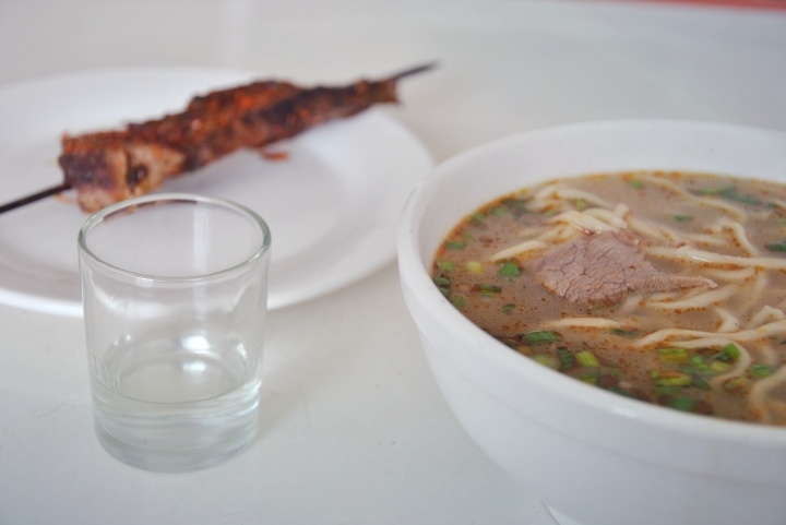 话说在平原我的身体素质有多好?在这边稍微走快点就各种累加喘。最后是以蜗牛速挪出大门的,寄完明信片赶紧找个小餐馆坐下,来了碗牛肉面一块烤牦牛肉,点了一小杯青稞酒两口闷下去,又痛快又难喝!
