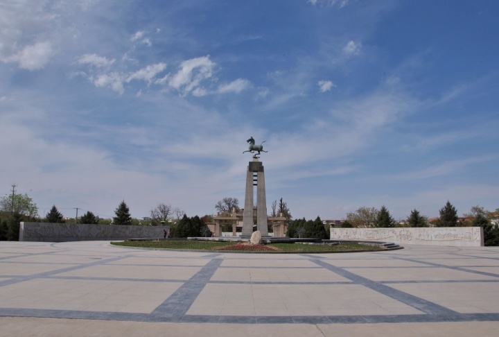 雷台因出土了著名的铜奔马而闻名。当年在雷台观的侧面挖防空洞时挖出一个东汉将军墓。墓室在东汉时已经被盗了,盗墓贼也挺有意思,临走还把盗洞用砖砌住。主墓室只出土了一根大腿骨,将军应该是战死的,没留全尸。其余随葬品在甘肃博物馆都见到了。