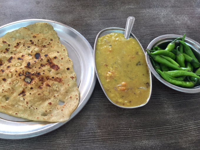 (上图)初到旧德里第二天起来,吃的第一份印度飞饼早餐,觉得很好吃,之后就找不回这份新鲜感了。