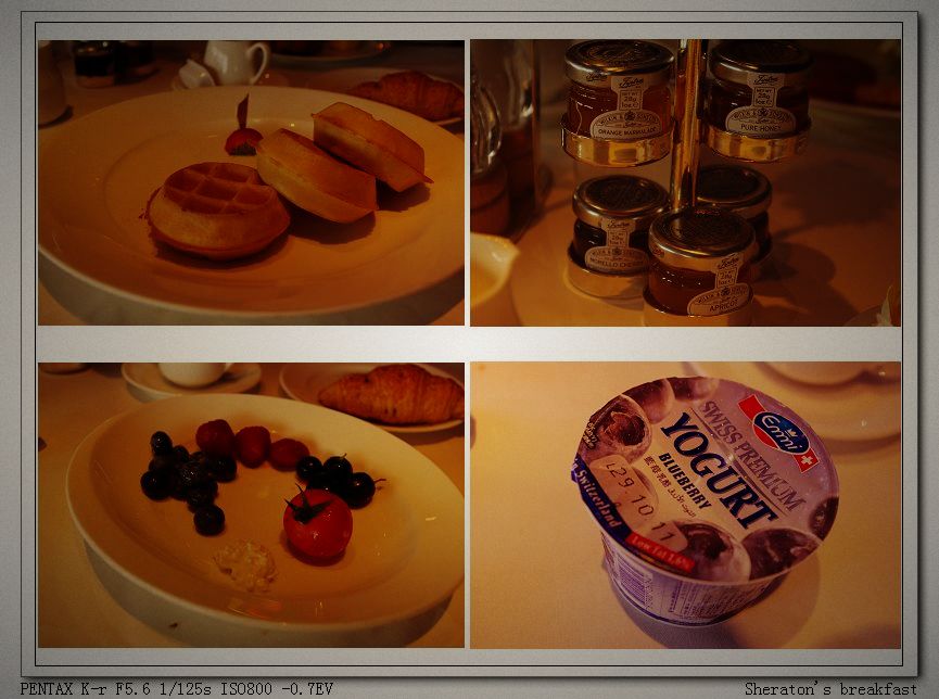 周六赖床,八点半起,至十八楼早餐毕已经十点。新鲜蓝莓及红莓是我爱,点了主餐窝夫,新鲜烤制出炉十分美味。 搭车过海中环时代广场下车,香港TAXI费用不低,过海都在百余元。 逛遍时代广场、SOGO沿街,买齐化妆品。茱莉寇和雅诗兰黛,给自己和妈咪。 在MUIMUI看中蓝色包包,但是那边没有巴黎世家,待回海港城比较后再决定。
