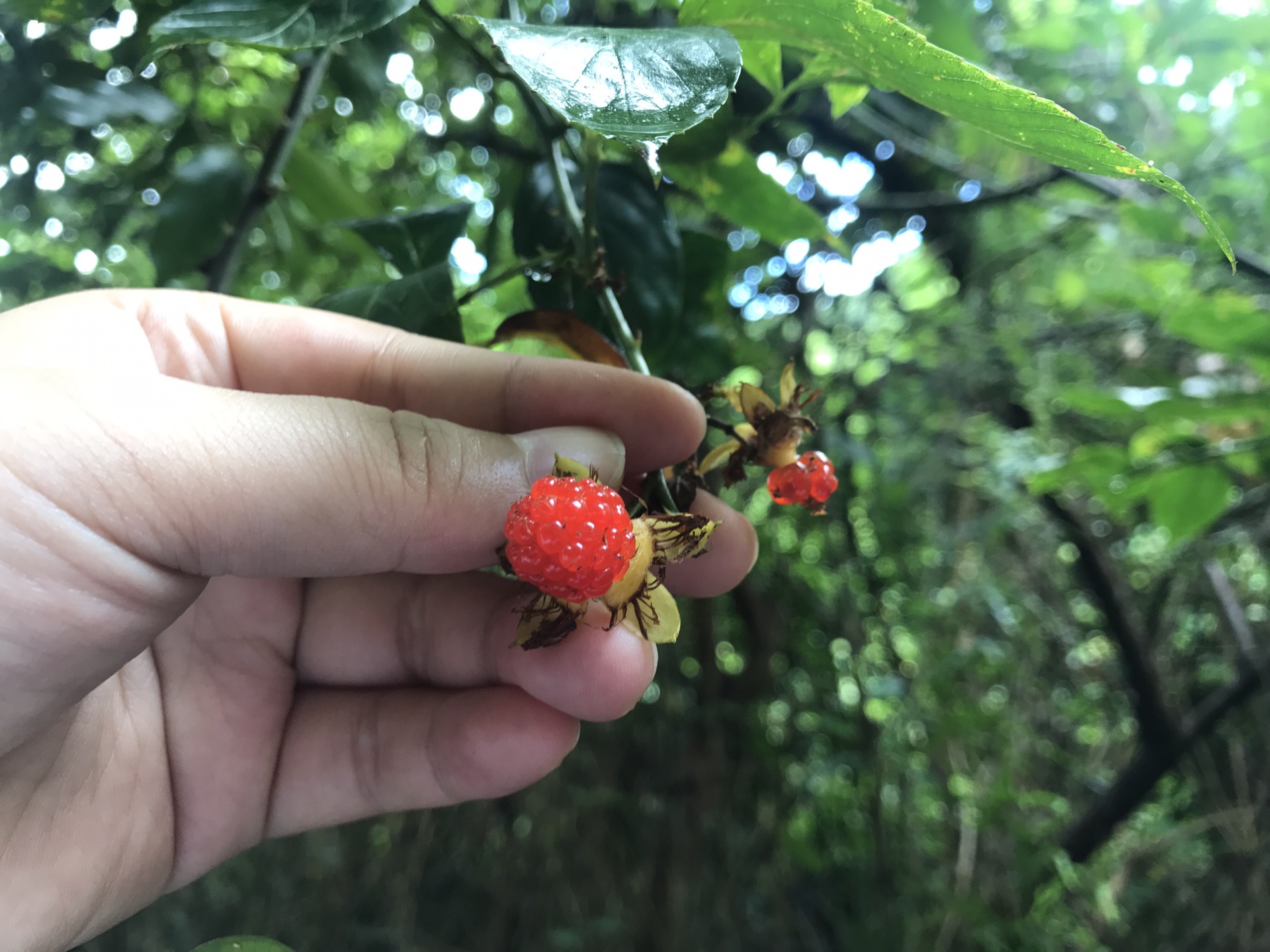 去的路上和回程,都抓了一把下图的野果,他俩都不敢吃,去的路上还让我别吃,不然中毒了背不动我